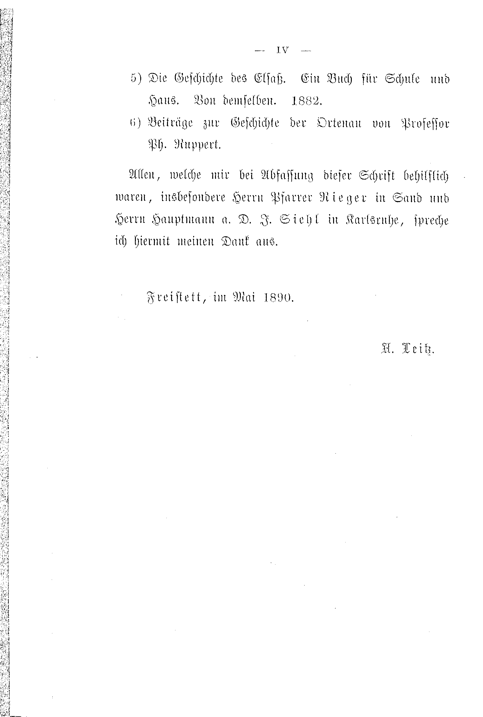Allen, welche mir bei Abfassung dieser Schrift behilflich waren, insbesondere Herrn Pfarrer Rieger aus Sand und Herrn Hauptmann a. D. J. Siehl in Karlsruhe, spreche ich hiermit meinen Dank aus.