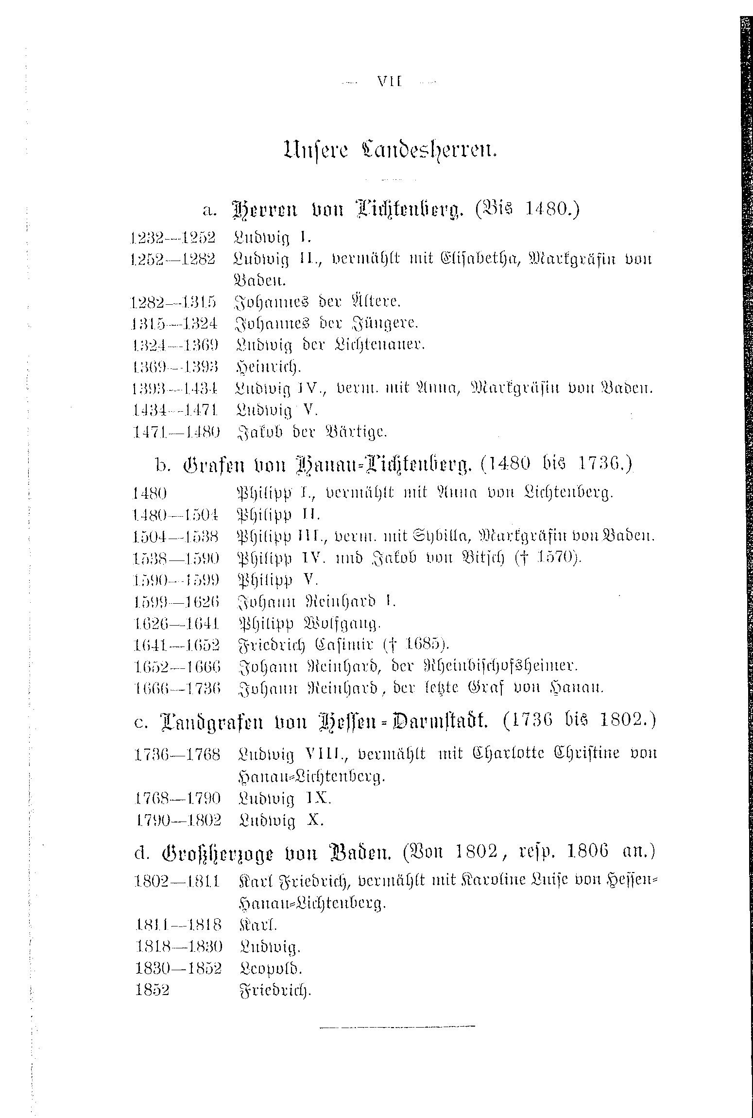 | Grafen von Hanau-Lichtenberg. (1480 bis 1736.) | |