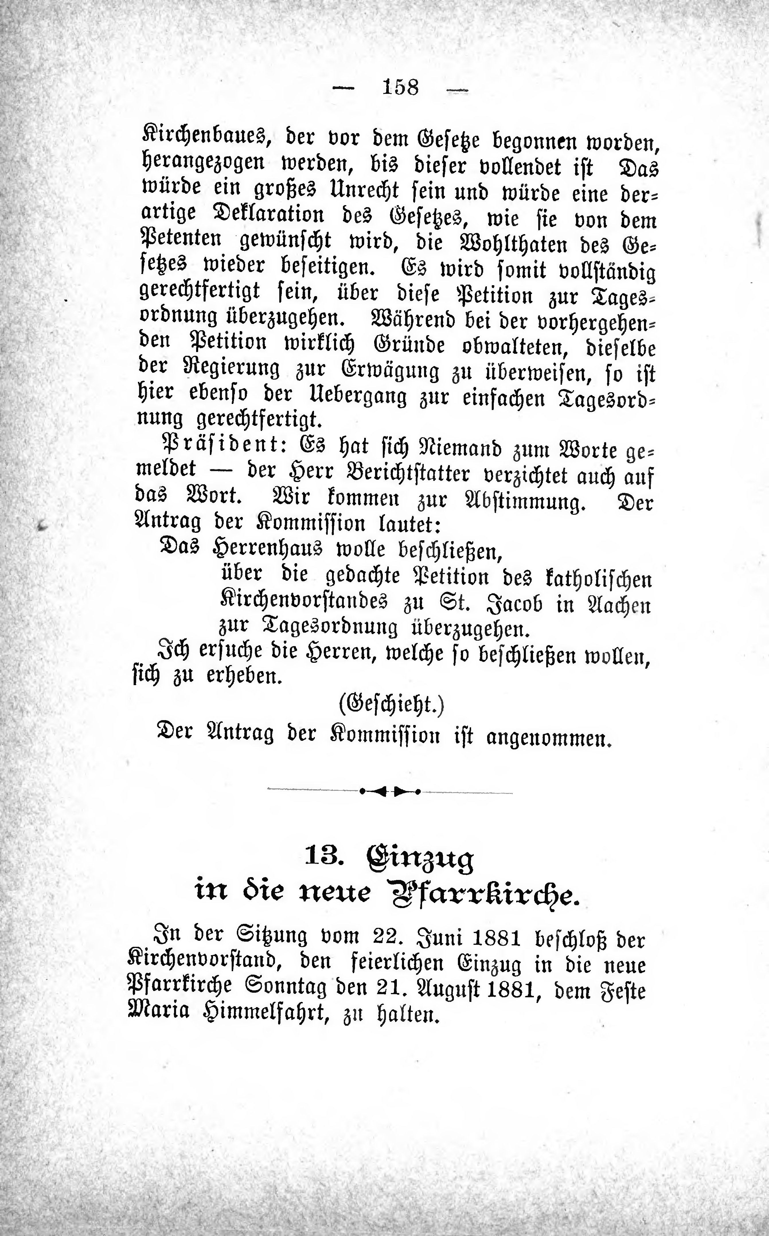 - über die gedachte Petition des katholischen Kirchenvorstandes zu St. Jacob in Aachen zur Tagesordnung überzugehen.