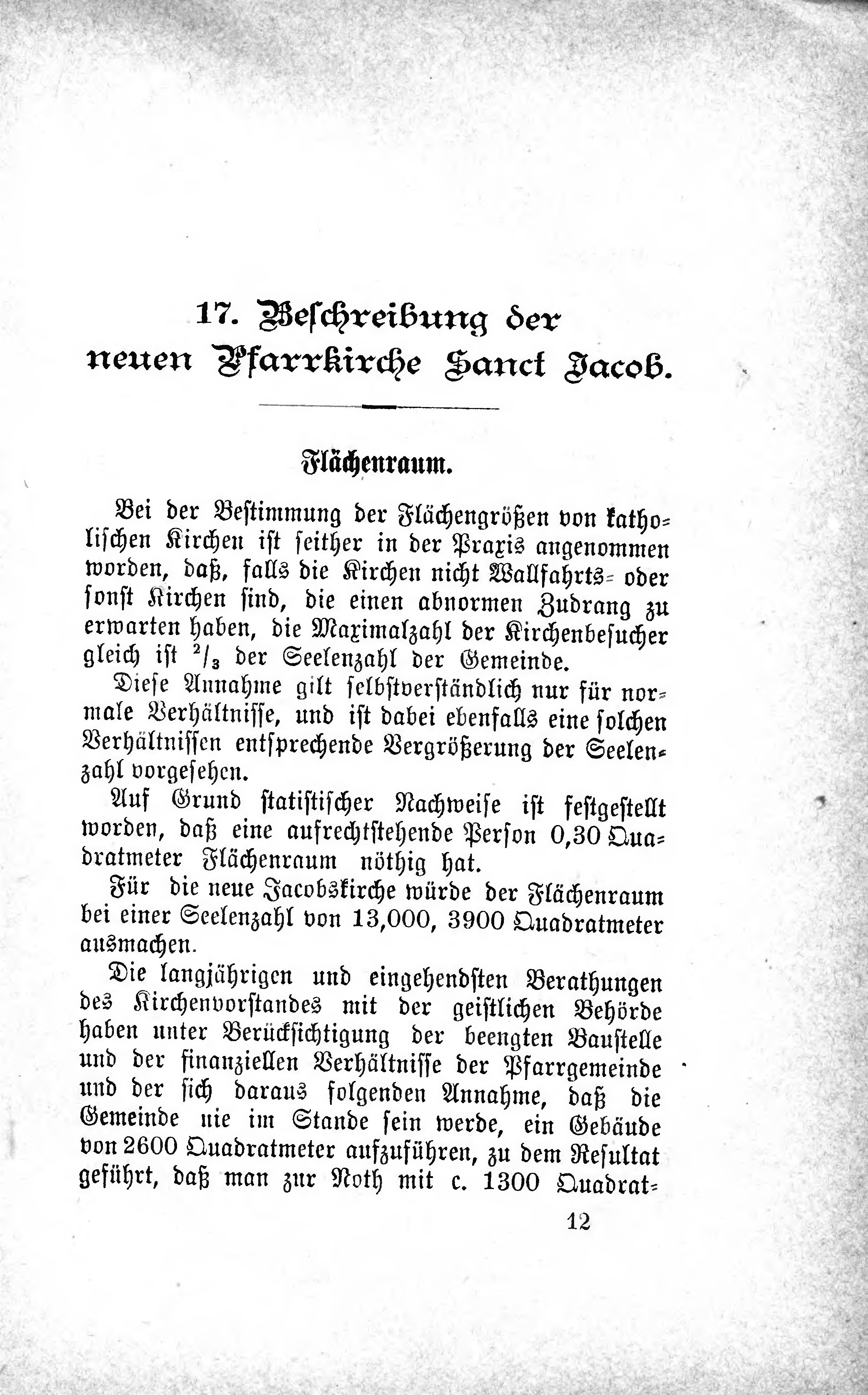 Für die neue Jacobskirche würde der Flächenraum bei einer Seelenzahl von 13,000, 3900 Quadratmeter ausmachen.