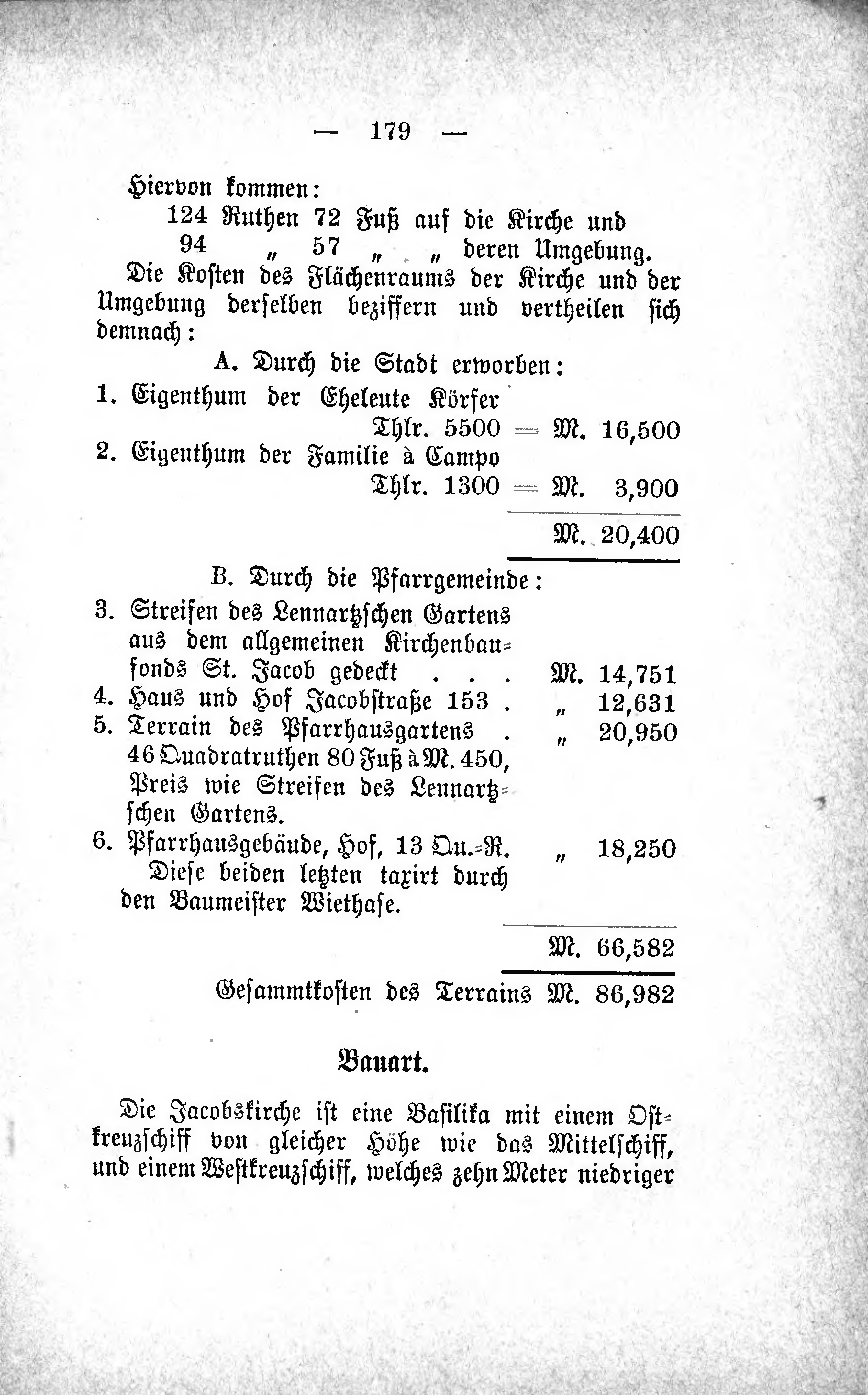 | 3. | Streifen des Lennartzschen Gartens aus dem allgemeinen Kirchenbaufonds St. Jacob gedeckt | M. | 14,751