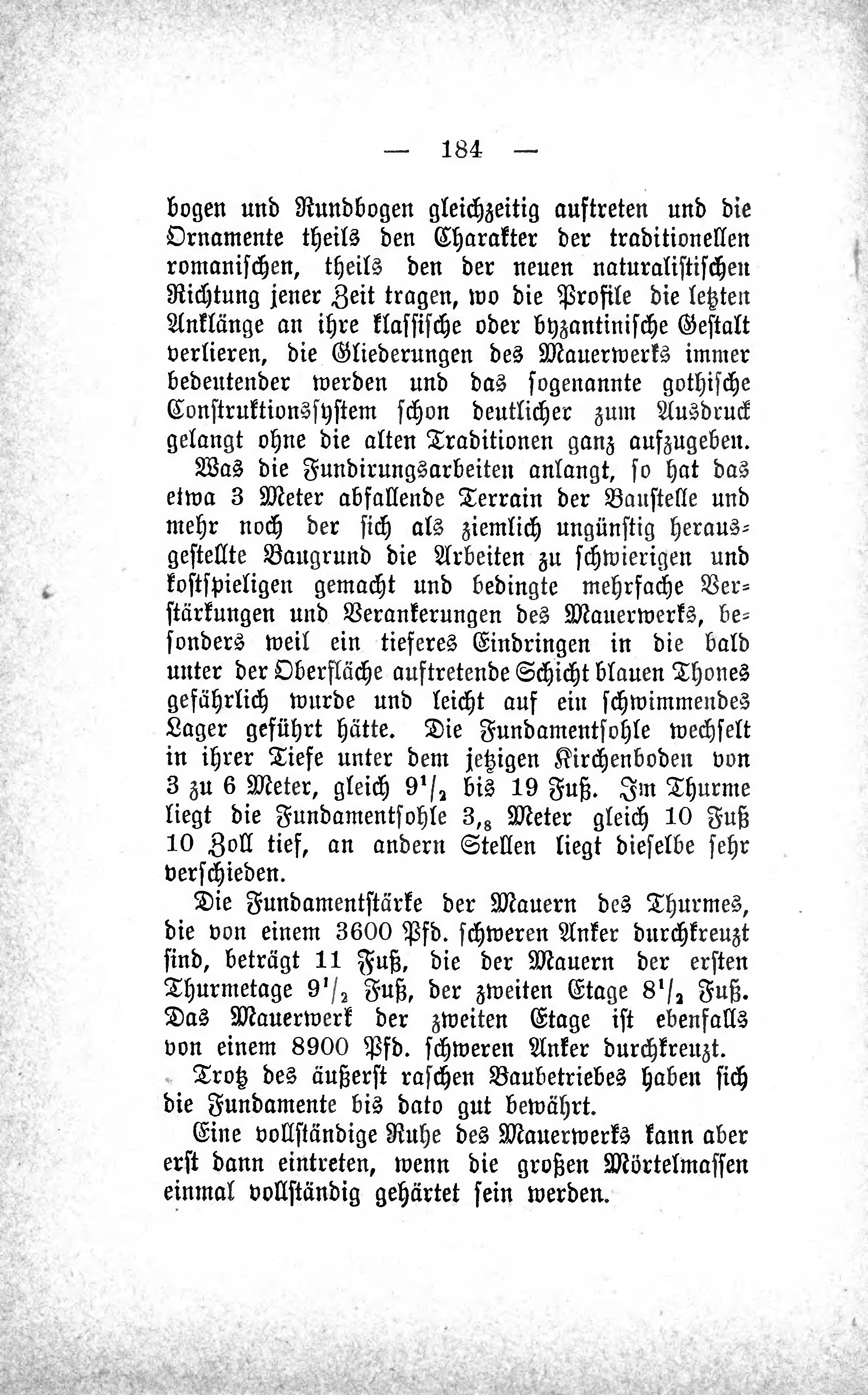 Eine vollständige Ruhe des Mauerwerks kann aber erst dann eintreten, wenn die großen Mörtelmassen einmal vollständig gehärtet sein werden.