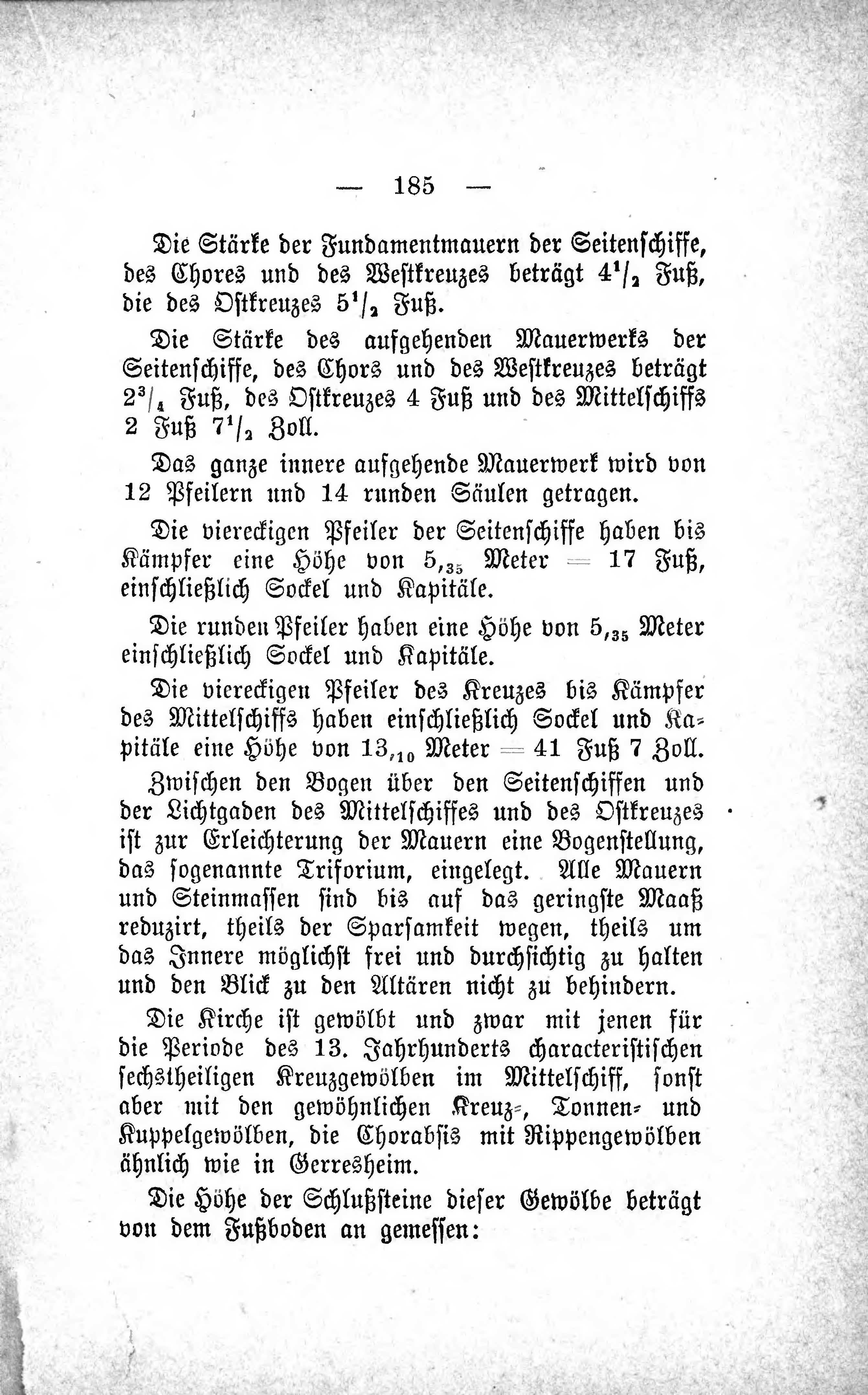 Die Starke der Fundamentmauern der Seitenschiffe, des Chores und des Westkreuzes betragt 41/2 Fuß, die des Ostkreuzes 51/2 Fuß.