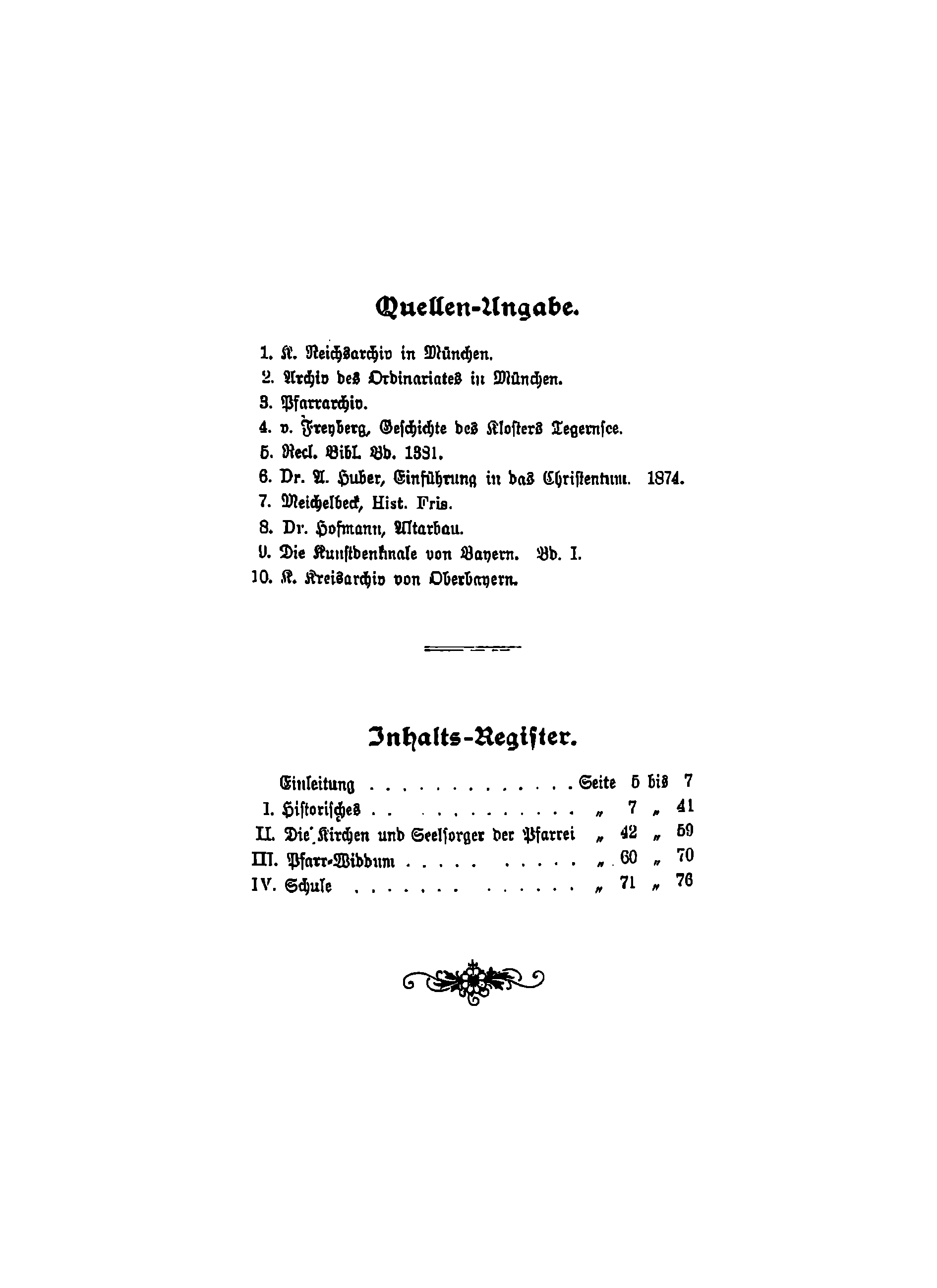 Geschichte der Pfarrei Finsing/Quellenangaben und Inhaltsverzeichnis