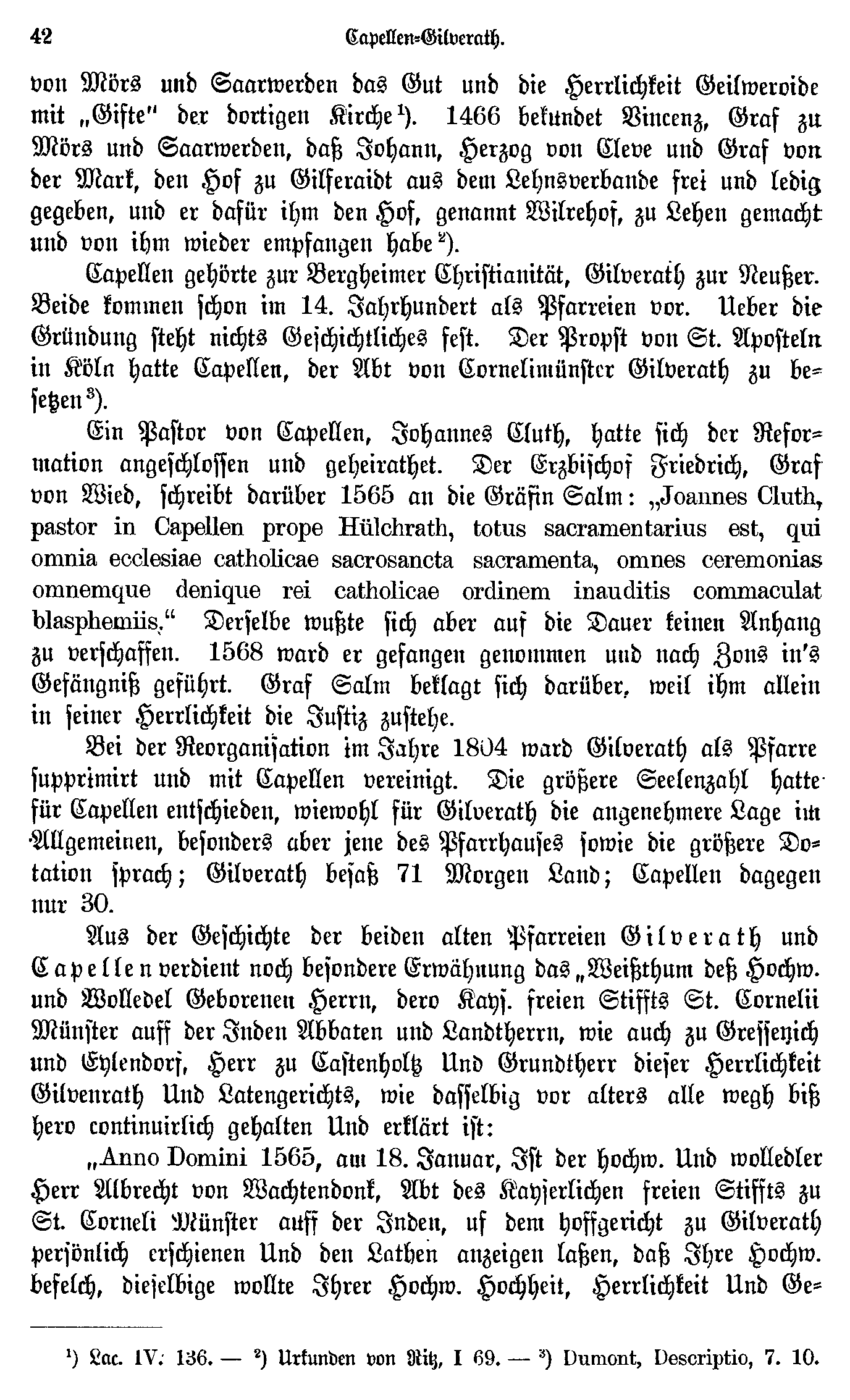 "Anno Domini 1565, am 18. Januar, Ist der hochw. Und wolledler Herr Albrecht von Wachtendonk, Abt des Kayserlichen freien Stiffts zu St. Corneli Münster auff der Inden, uf dem hoffgericht zu Gilverath persönlich erschienen Und den Lathen anzeigen laßen, daß Ihre Hochw. befelch, dieselbige wollte Ihrer Hochw. Hochheit, Herrlichkeit Und Gerechtigkeit