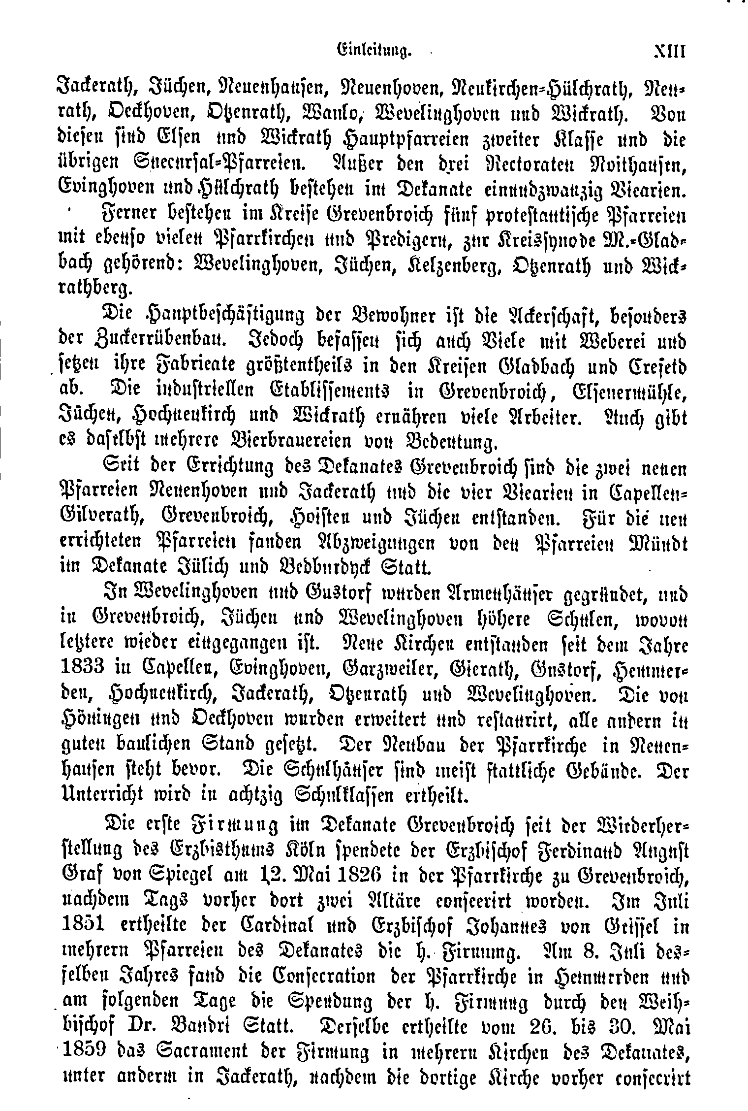 Die erste Firmung im Dekanate Grevenbroich seit der Wiederherstellung des Erzbisthums Köln spendete der Erzbischof Ferdinand August Graf von Spiegel am 12. Mai 1826 in der Pfarrkirche zu Grevenbroich nachdem Tags vorher dort zwei Altäre consecrirt worden. Im Juli 1851 ertheilte der Cardinal und Erzbischof Johannes von Beissel in mehrern Pfarreien des Dekanates die h. Firmung. Am 8. Juli besselben Jahres fand die Consecration der Pfarrkirche in Hemmerden und am folgenden Tage die Spendung der h. Firmung durch den Weihbischof Dr. Bandri Statt. Derselbe ertheilte vom 26. bis 30. Mai 1859 das Sacrament der Firmung in mehrern Kirchen des Dekanates, unter anderm in Jackerath, nachdem die dortige Kirche vorher consecrirt