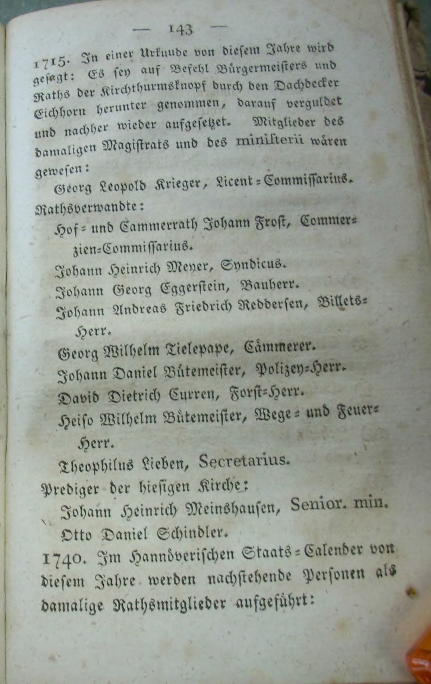 1740. Im Hannöverischen Staats-Calender von diesem Jahre werden nachstehende Personen als damalige Rathsmitglieder aufgeführt: