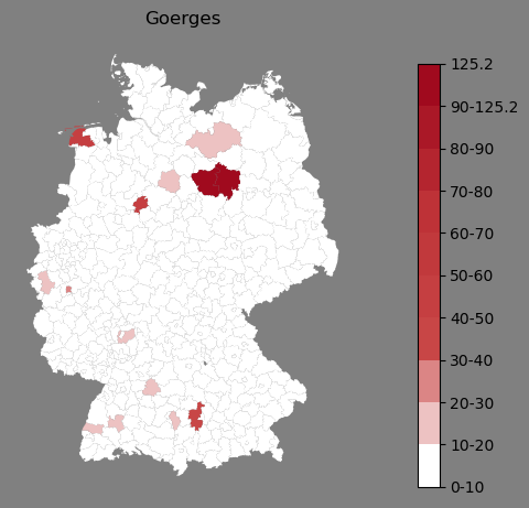 Absolute Verteilung des Namens Goerges (1890)Direkt zur Karte Absolute Verteilung des Namens "Goerges" um 1890 im damaligen Deutschen Reich Sie können die Karte innerhalb des Fensters zoomen und verschieben. |