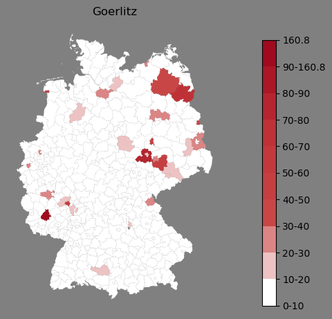 Absolute Verteilung des Namens Goerlitz (1890)Direkt zur Karte Absolute Verteilung des Namens "Goerlitz" um 1890 im damaligen Deutschen Reich Sie können die Karte innerhalb des Fensters zoomen und verschieben. |
