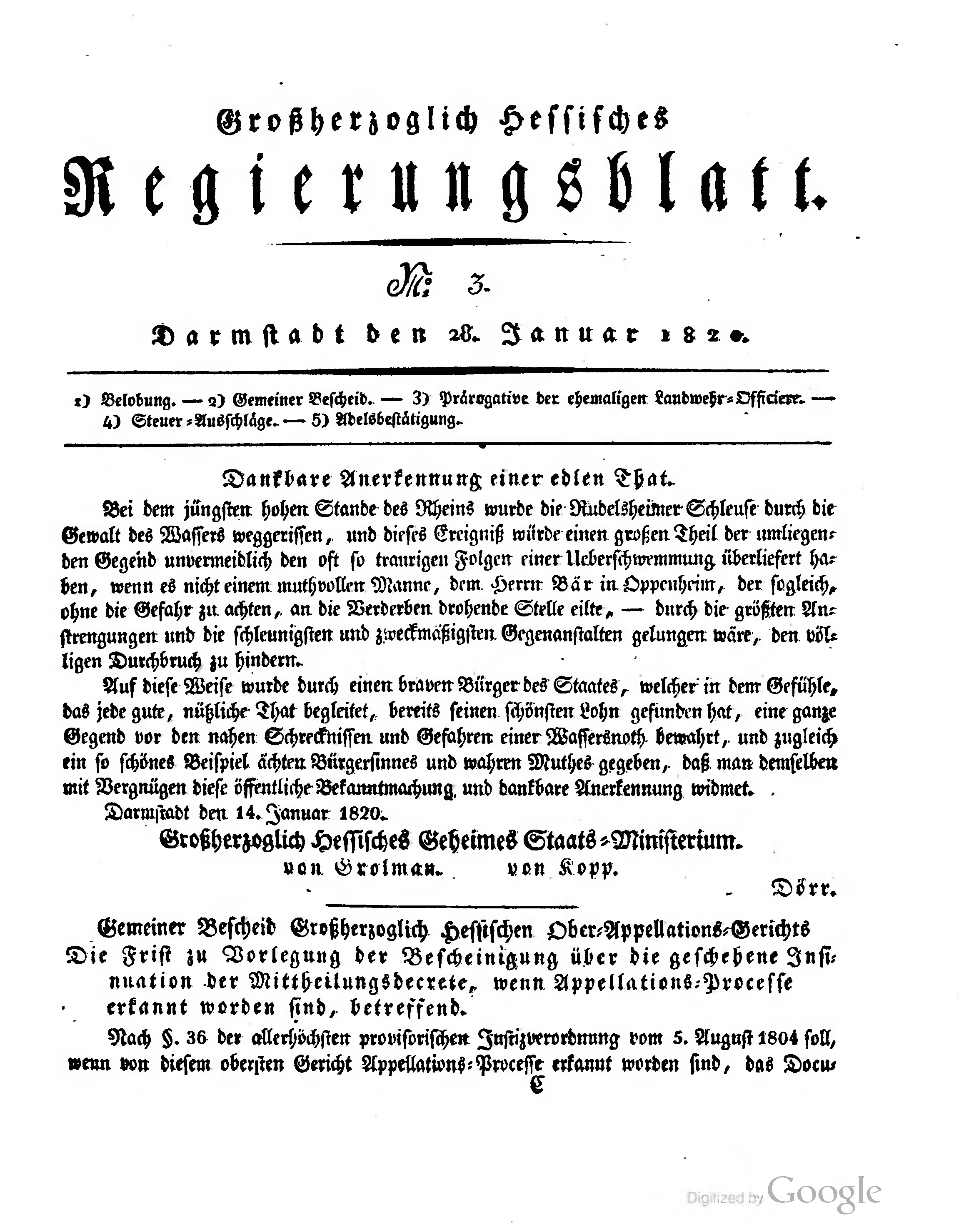 | Großherzogtum Hessen/Regierungsblatt 1820 | |