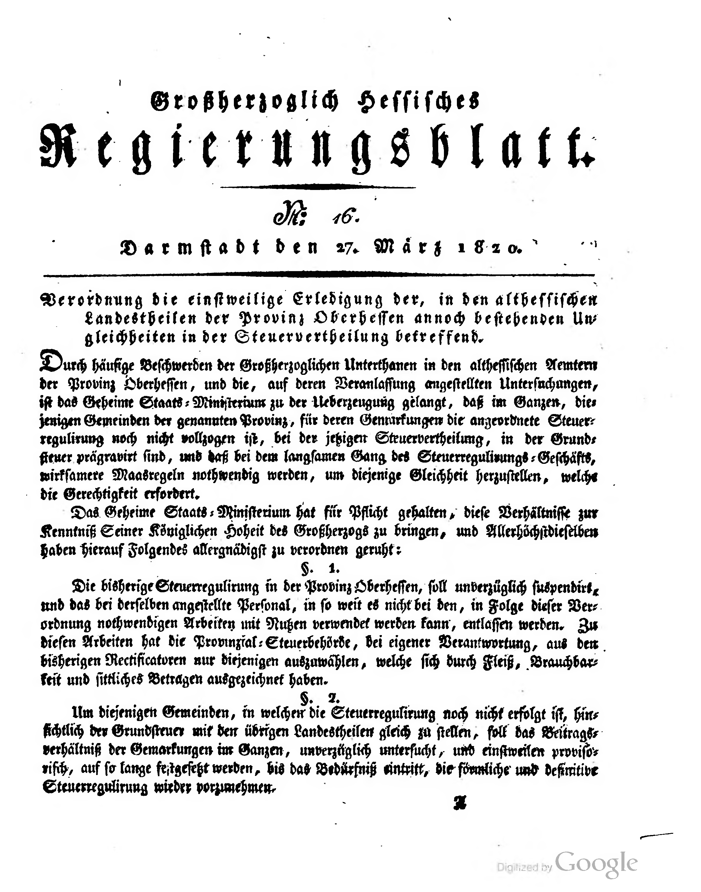 | Großherzogtum Hessen/Regierungsblatt 1820 | |