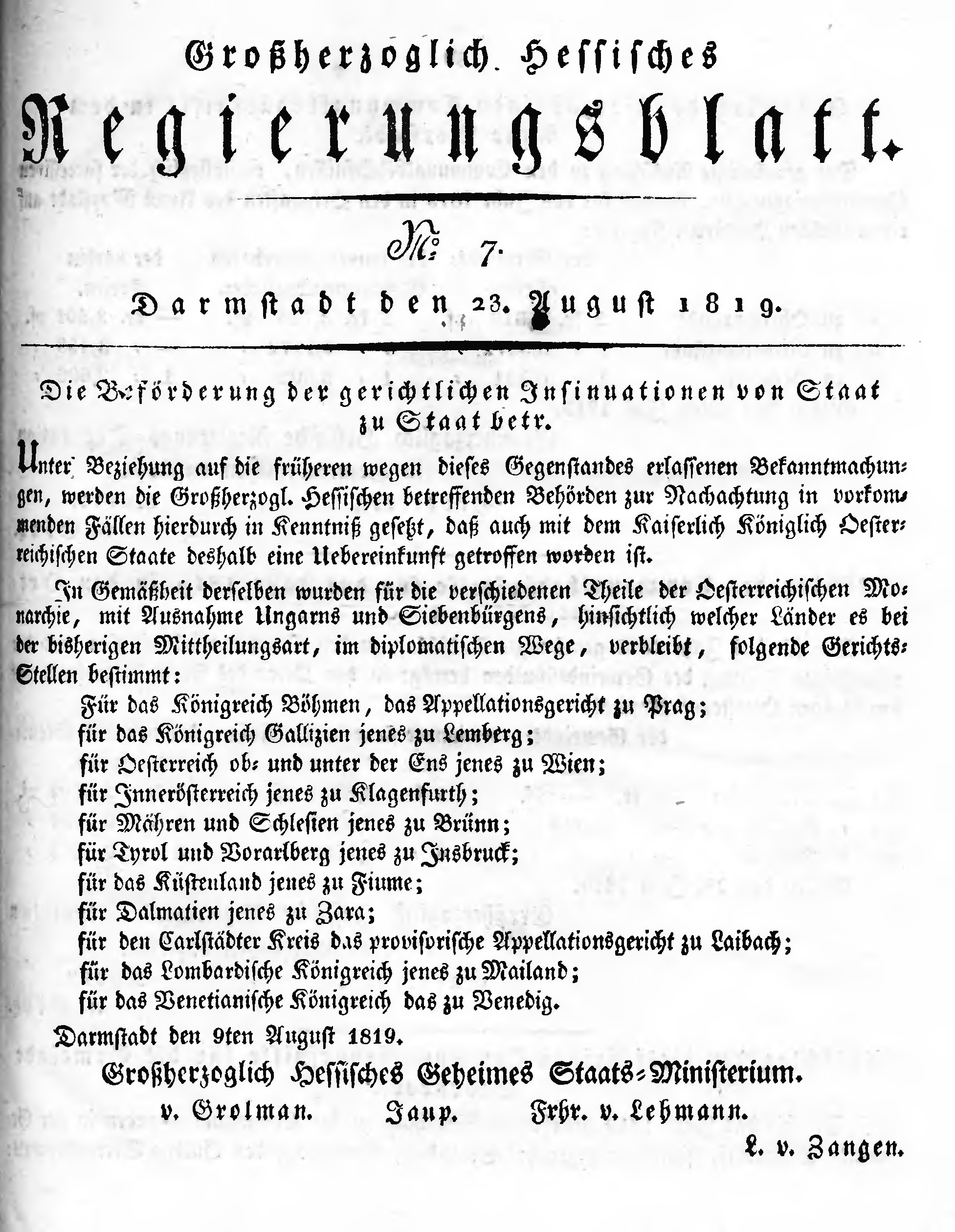 | Großherzogtum Hessen/Regierungsblatt 1819 | |