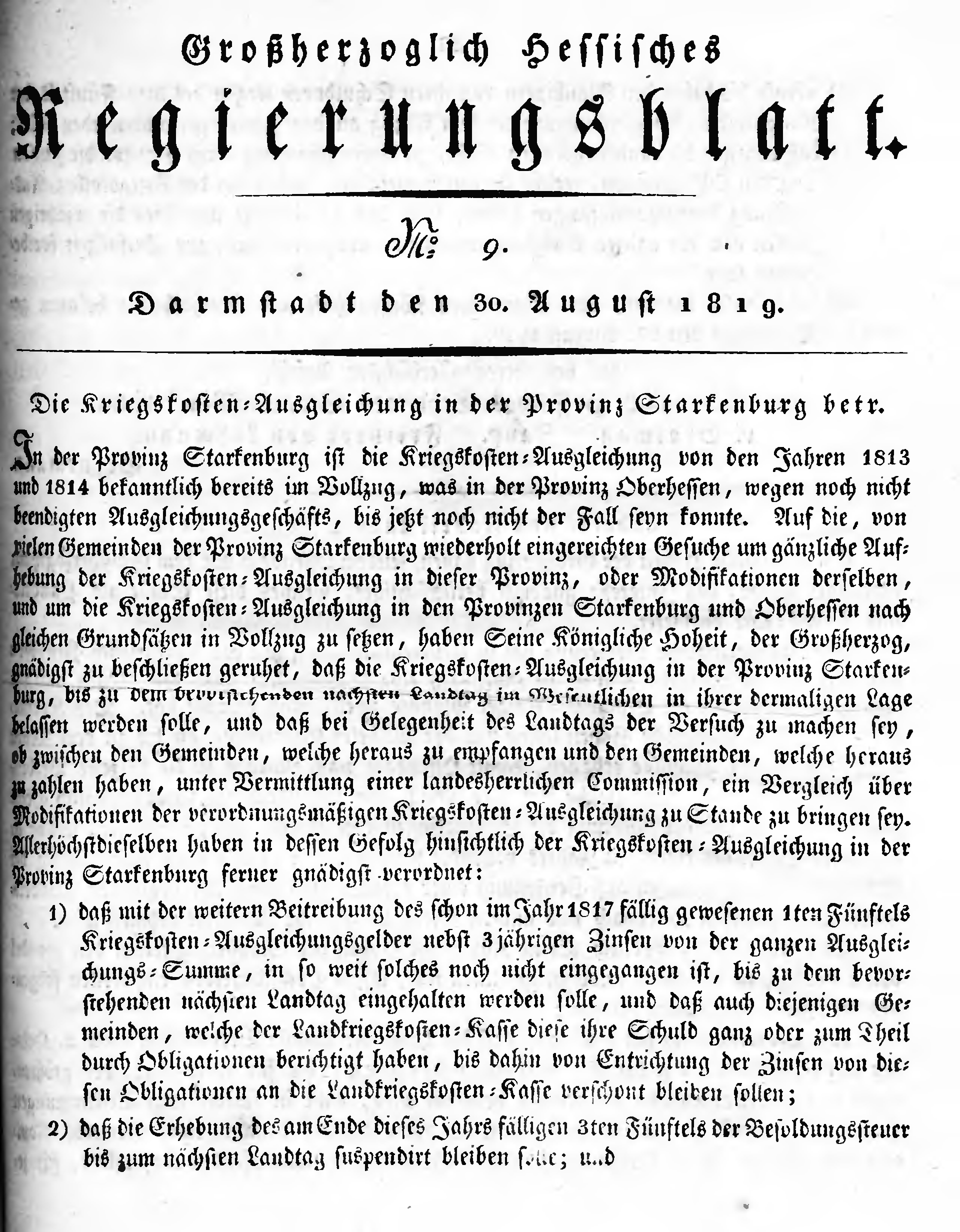 | Großherzogtum Hessen/Regierungsblatt 1819 | |