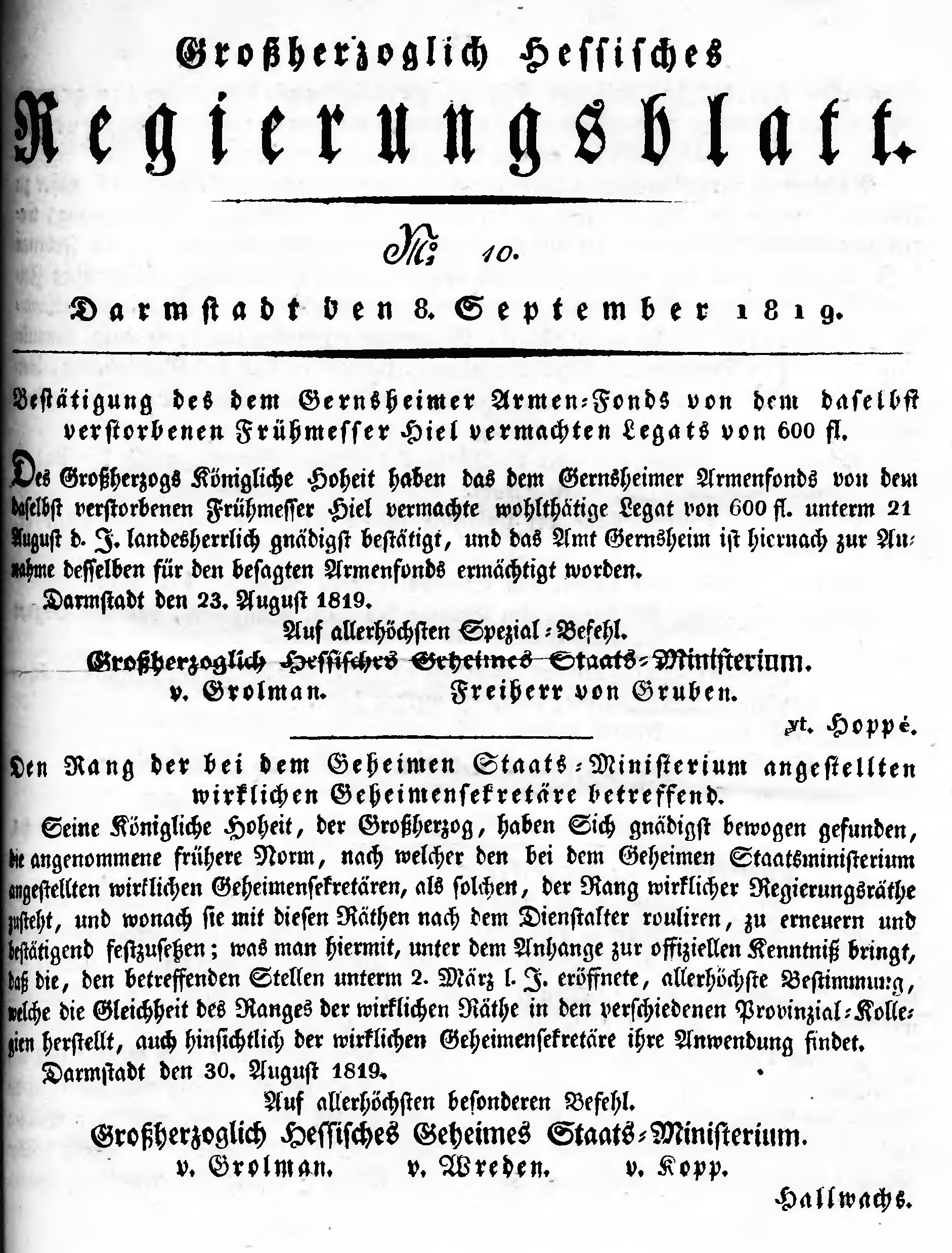 | Großherzogtum Hessen/Regierungsblatt 1819 | |