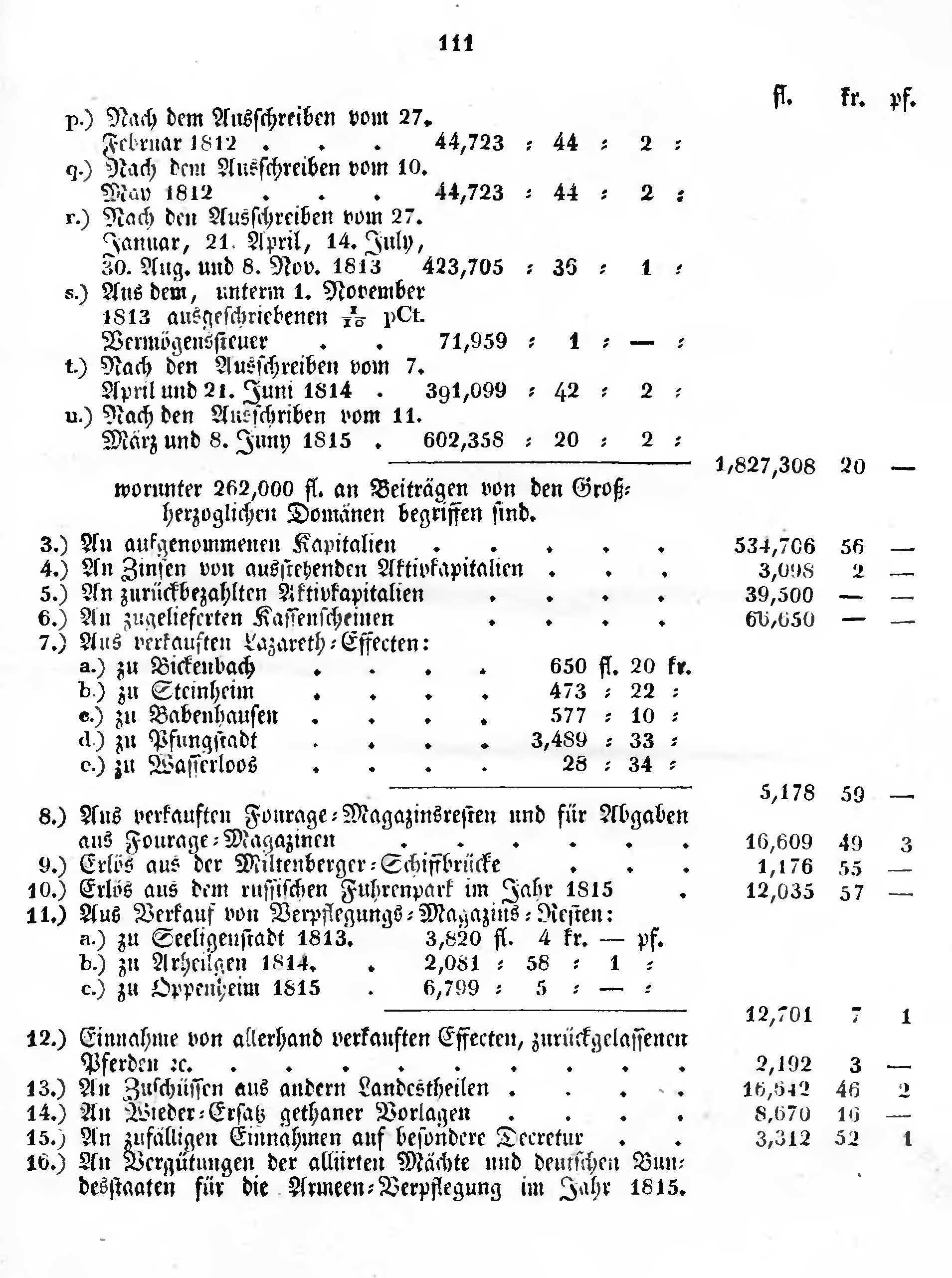 | a.) | zu Seeligenstadt 1813. | 3,820 | fl. | 4 | kr. | - | pf. | |||||