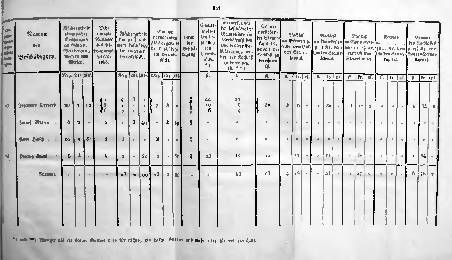 der beschädigten Grundstücke im Verhältniß des Grades der Be- schädigung, wo- von der Nachlaß zu berechnen ist. **) |