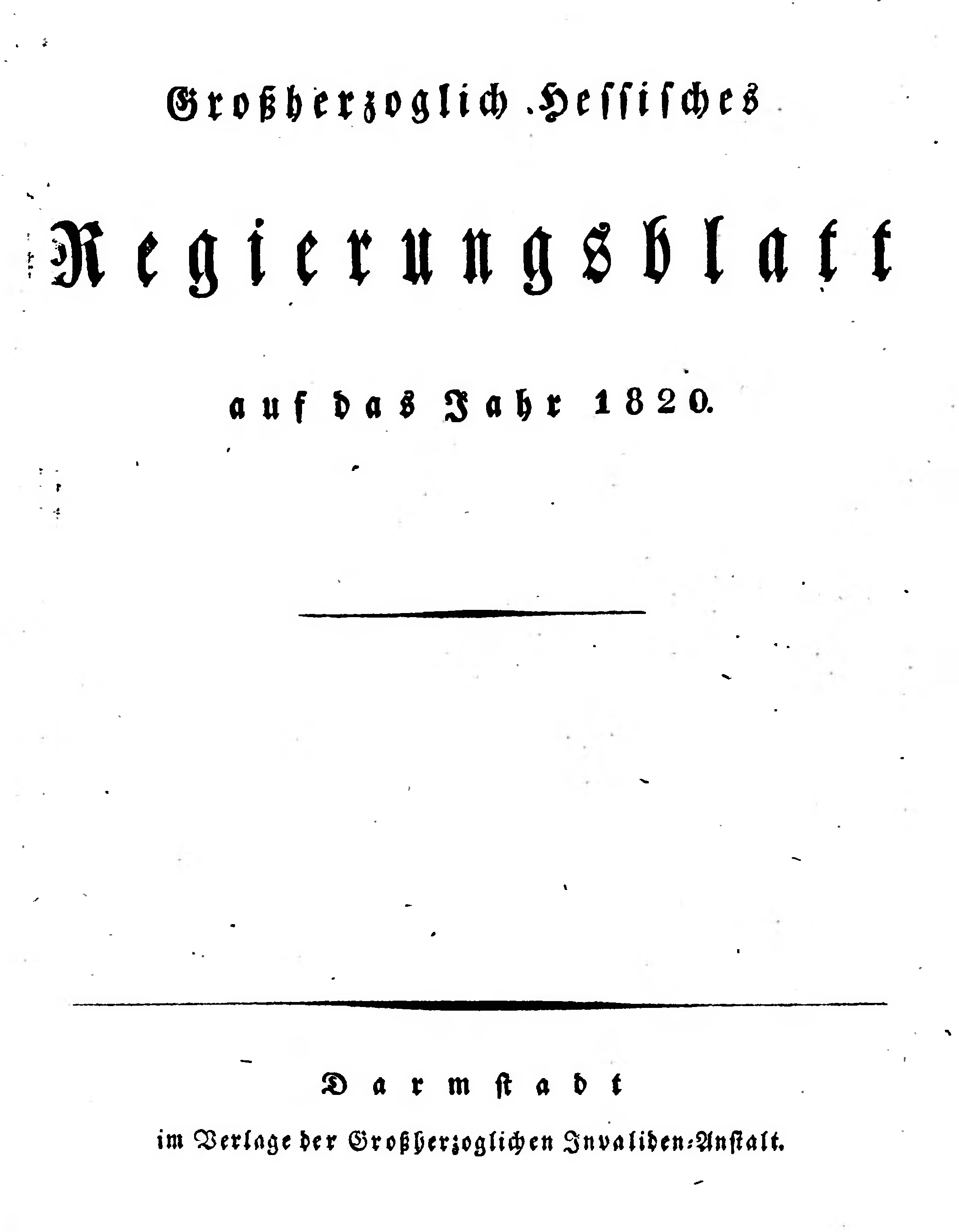 Großherzoglich Hessisches Regierungsblatt auf das Jahr 1820. Darmstadt: Verlag der Großherzoglichen Invaliden-Anstalt 1820