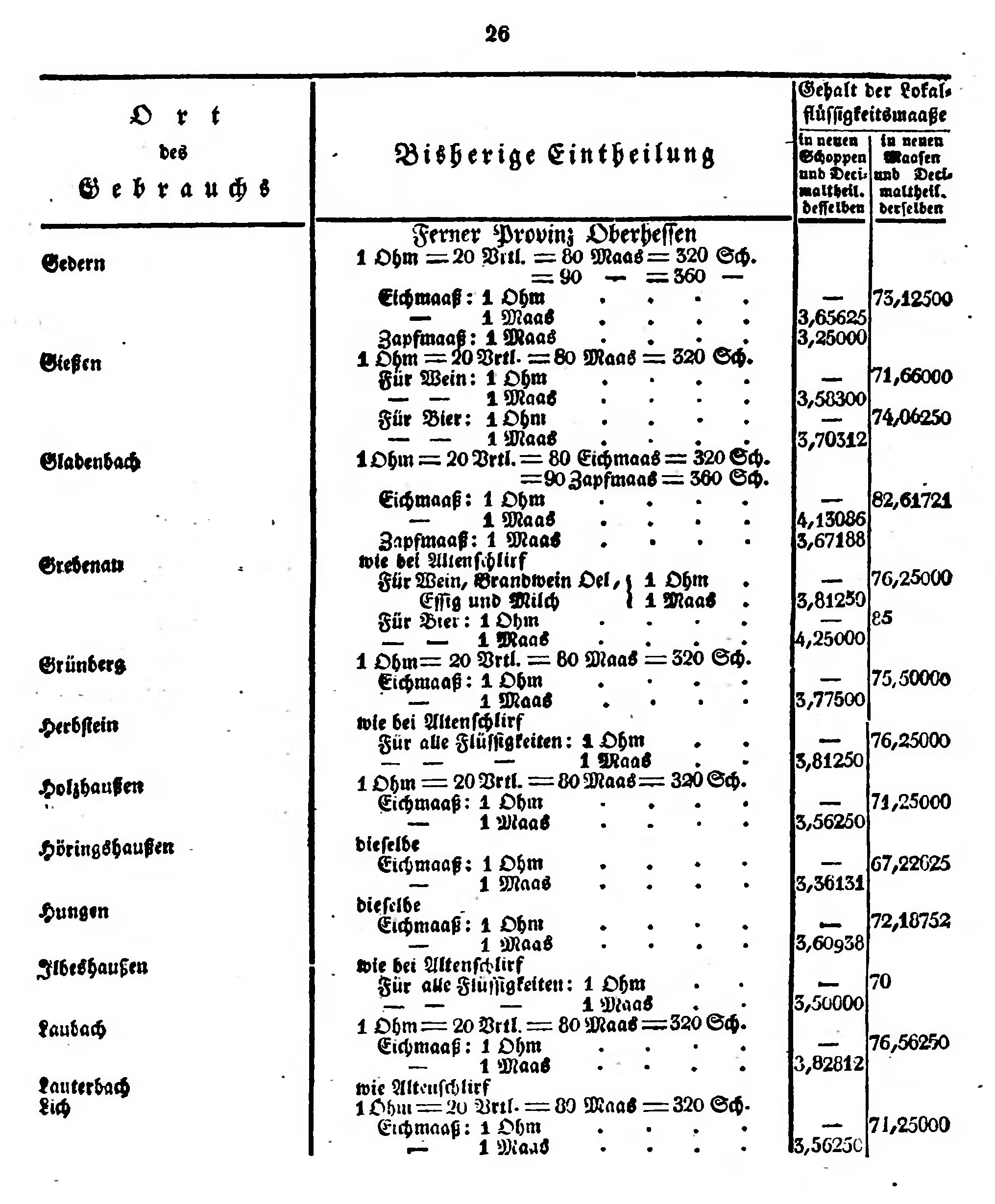 = 90 Maas=360 Sch. Eichmaaß: 1 Ohm - - - - - - - - 1 Maas Zapfmaaß: 1 Maas 1 Ohm=20 Vrtl.=80 Maas=320 Sch. Für Wein: 1 Ohm - - - - - - - - 1 Maas Für Bier: 1 Ohm - - - - - - - 1 Maas 1 Ohm=20 Vrtl.=80 Eichmaas=320 Sch. = 90 Zapfmaas=360 Sch. Eichmaaß: 1 Ohm - - - - - - - - 1 Maas Zapfmaaß: 1 Maas wie bei Altenschlirf Für Wein, Brandwein Oel , Essig und Milch 1 Ohm . - - - - - - - - - - - - - - - - - - - - - - - - - - - - - - - 1 Maas . Für Bier: 1 Ohm - - - - - - - 1 Maas 1 Ohm=20 Vrtl.= 80 Maas=320 Sch. Eichmaaß: 1 Ohm - - - - - - - - 1 Maas wie bei Altenschlirf Für alle Flüssigkeiten: 1 Ohm - - - - - - - - - - - - - - - 1 Maas 1 Ohm=20 Vrtl.=80 Maas=320 Sch. Eichmaaß: 1 Ohm - - - - - - - - 1 Maas dieselbe Eichmaaß: 1 Ohm - - - - - - - - 1 Maas dieselbe Eichmaaß: 1 Ohm - - - - - - - - 1 Maas wie bei Altenschlirf Für alle Flüssigkeiten: 1 Ohm - - - - - - - - - - - - - - - - 1 Maas 1 Ohm=20 Vrtl.=80 Maas=320 Sch. Eichmaaß: 1 Ohm - - - - - - - -1 Maas wie Altenschlirf 1 Ohm=20 Vrtl.=80 Maas=320 Sch. Eichmaaß: 1 Ohm - - - - - - - - 1 Maas |