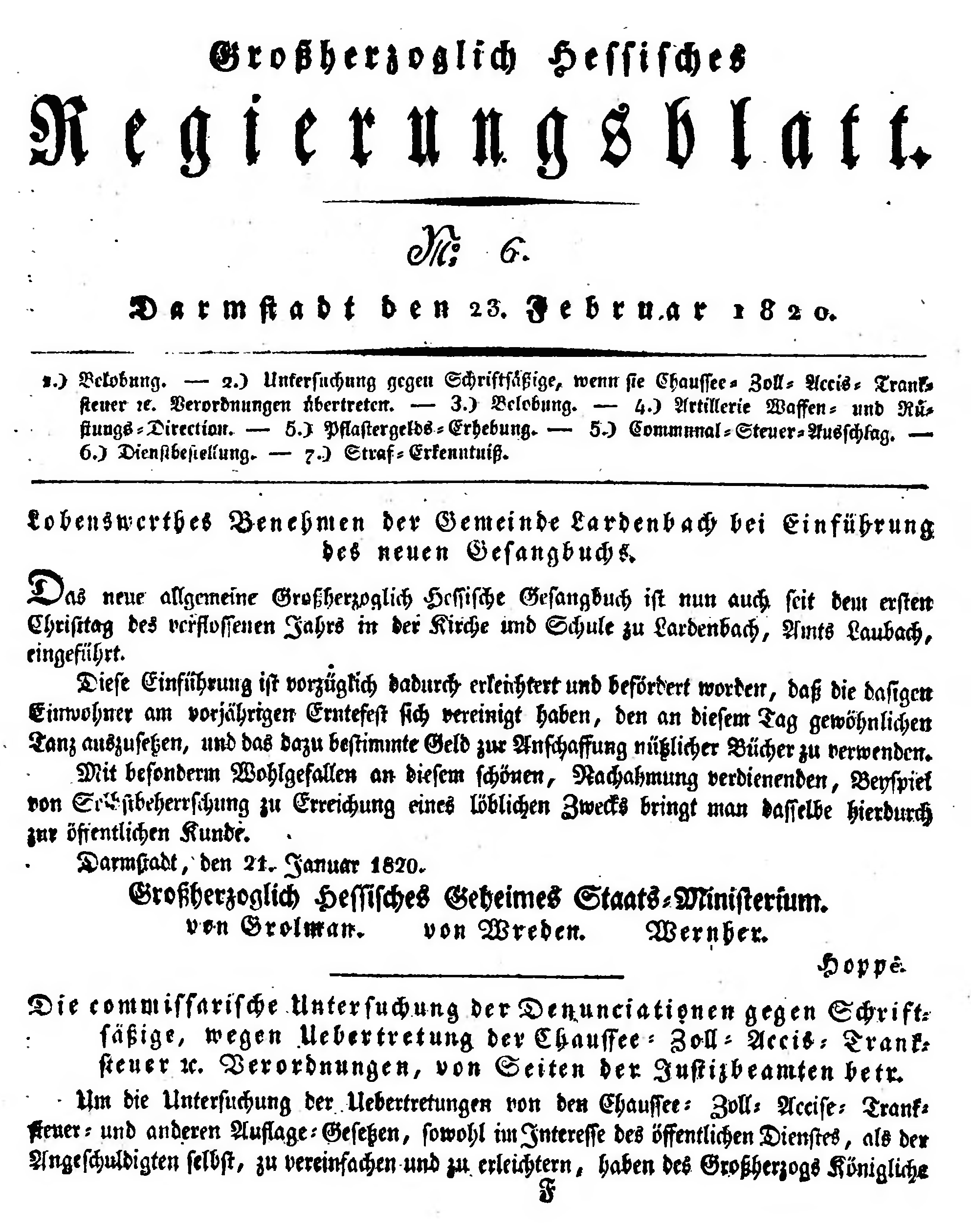 | Großherzogtum Hessen/Regierungsblatt 1820 | |