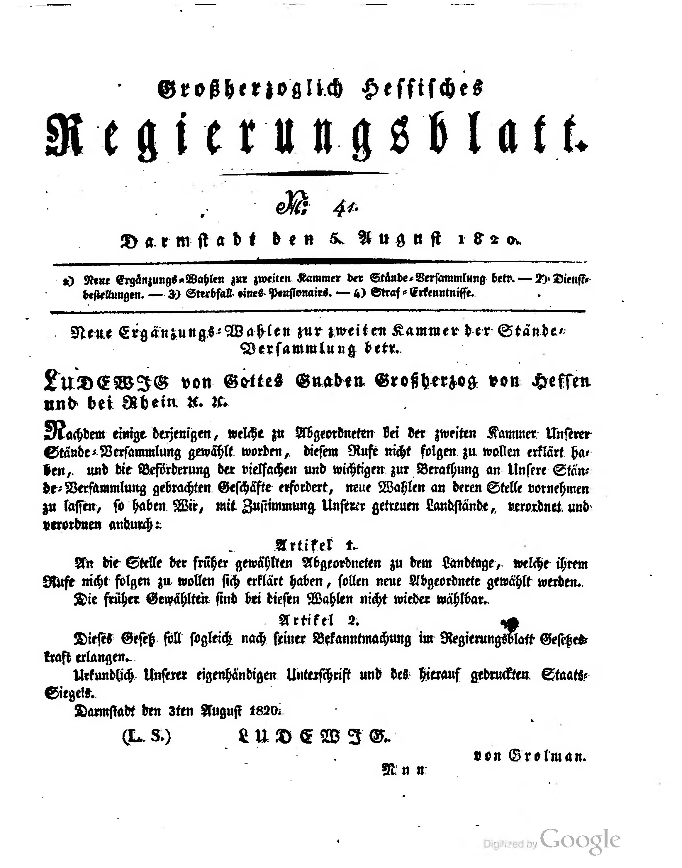 | Großherzogtum Hessen/Regierungsblatt 1820 | |