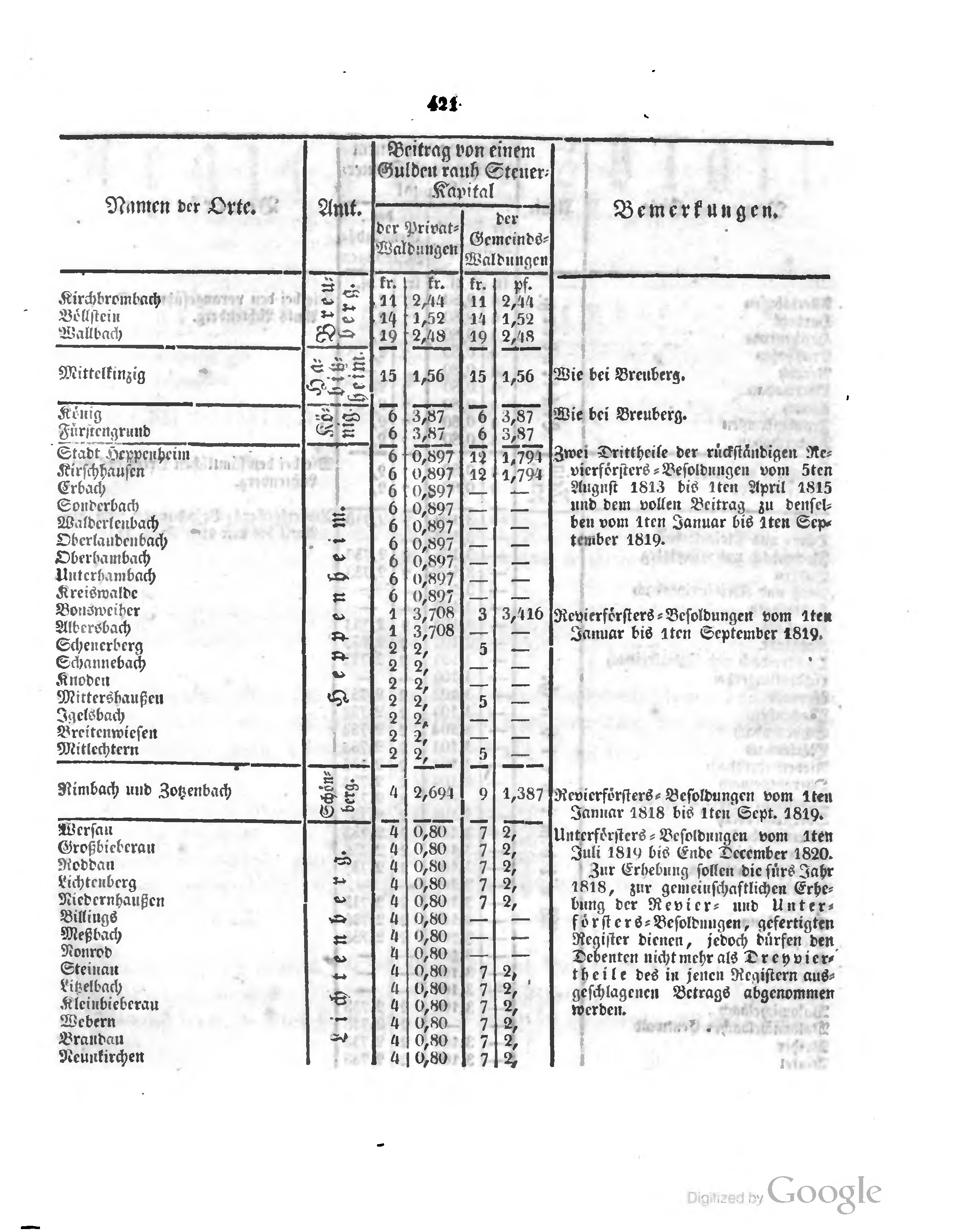 | Bonsweiler | 1 | 3,708 | 3 | 3,416 | Revierförsters-Besoldungen vom 1ten Januar bis 1ten September 1819. | |