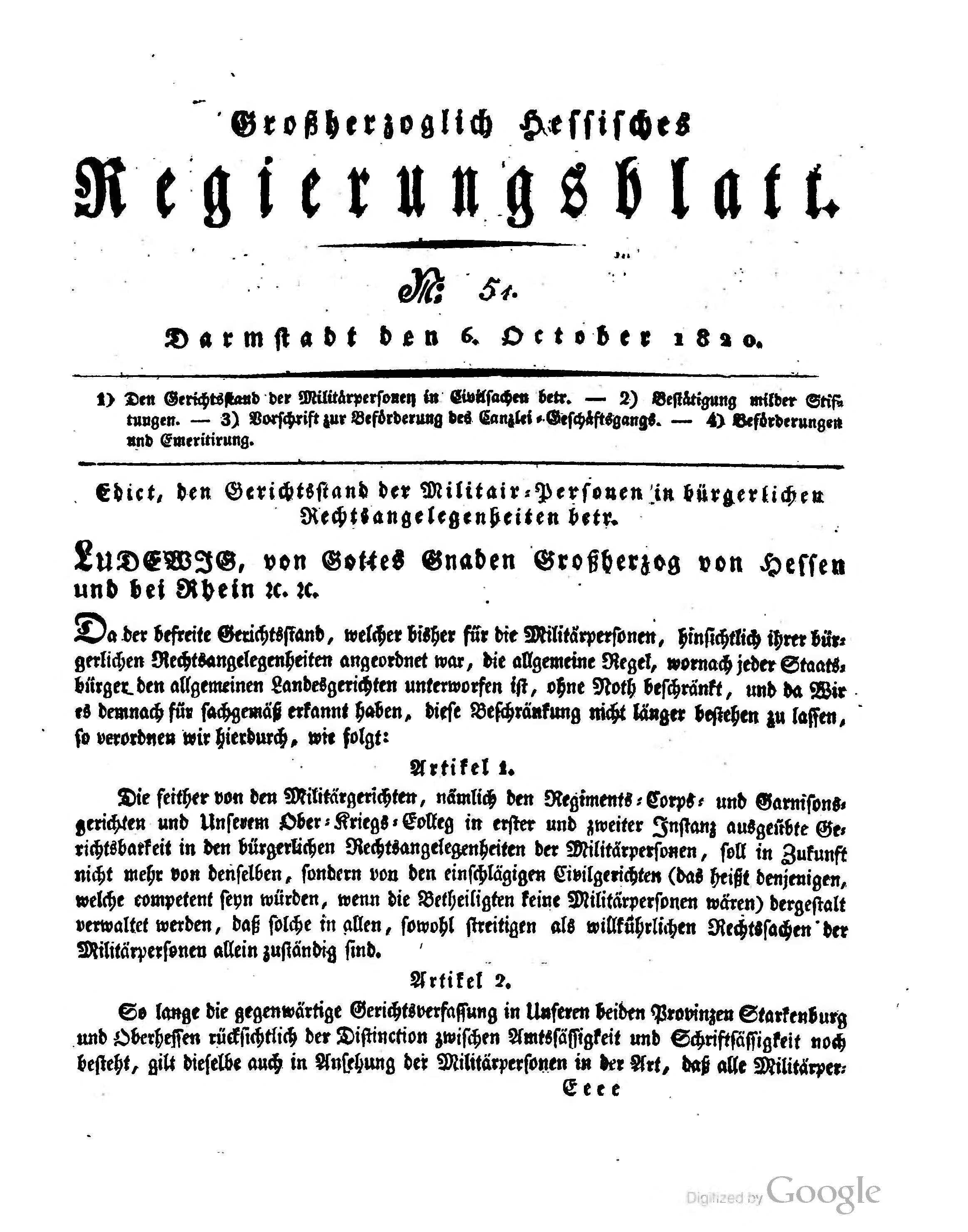 | Großherzogtum Hessen/Regierungsblatt 1820 | |