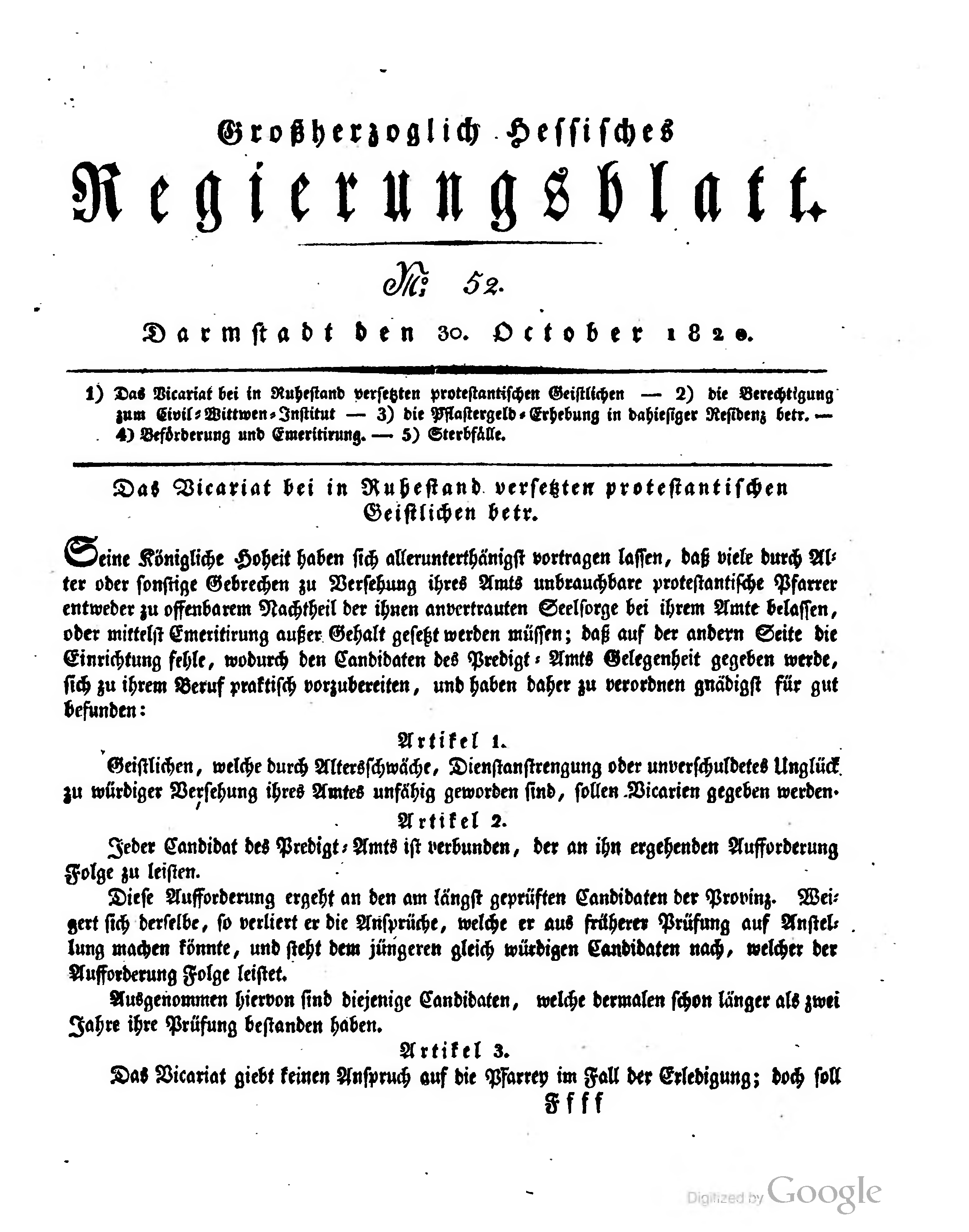 | Großherzogtum Hessen/Regierungsblatt 1820 | |