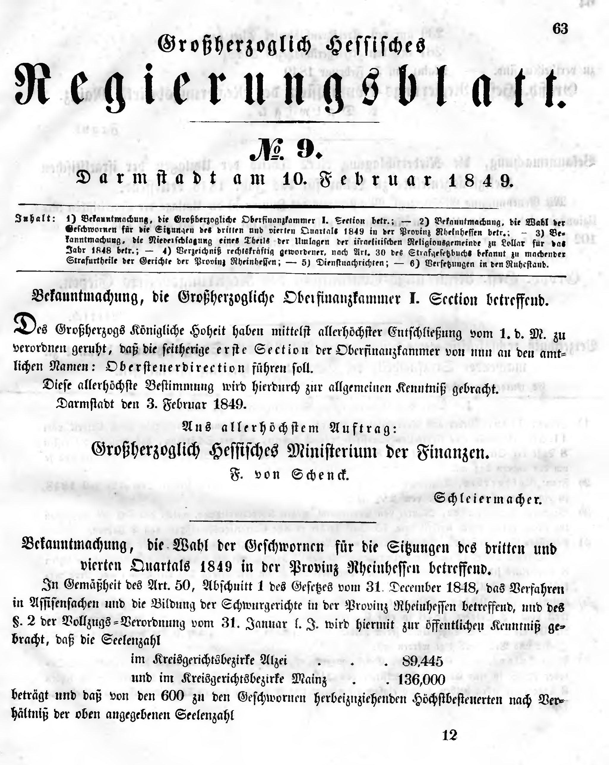 | Großherzogtum Hessen/Regierungsblatt 1849 | |
