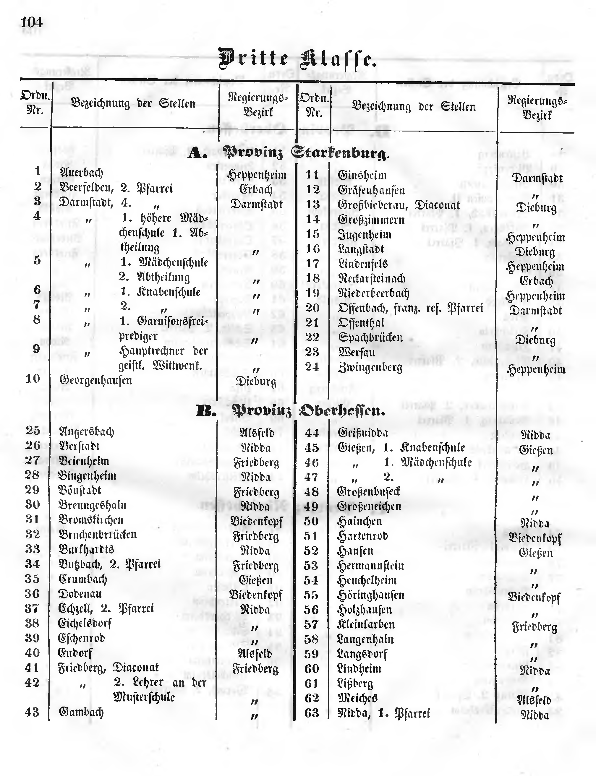 Auerbach Beerfelden, 2. Pfarrei Darmstadt, 4. Pfarrei Darmstadt, 1. höhere Mädchenschule 1. Abtheilung Darmstadt, 1. Mädchenschule 2. Abtheilung Darmstadt, 1. Knabenschule Darmstadt, 2. Knabenschule Darmstadt, 1. Garnisonsfreiprediger Darmstadt, Hauptrechner der geistl. Wittwenk. Georgenhausen |