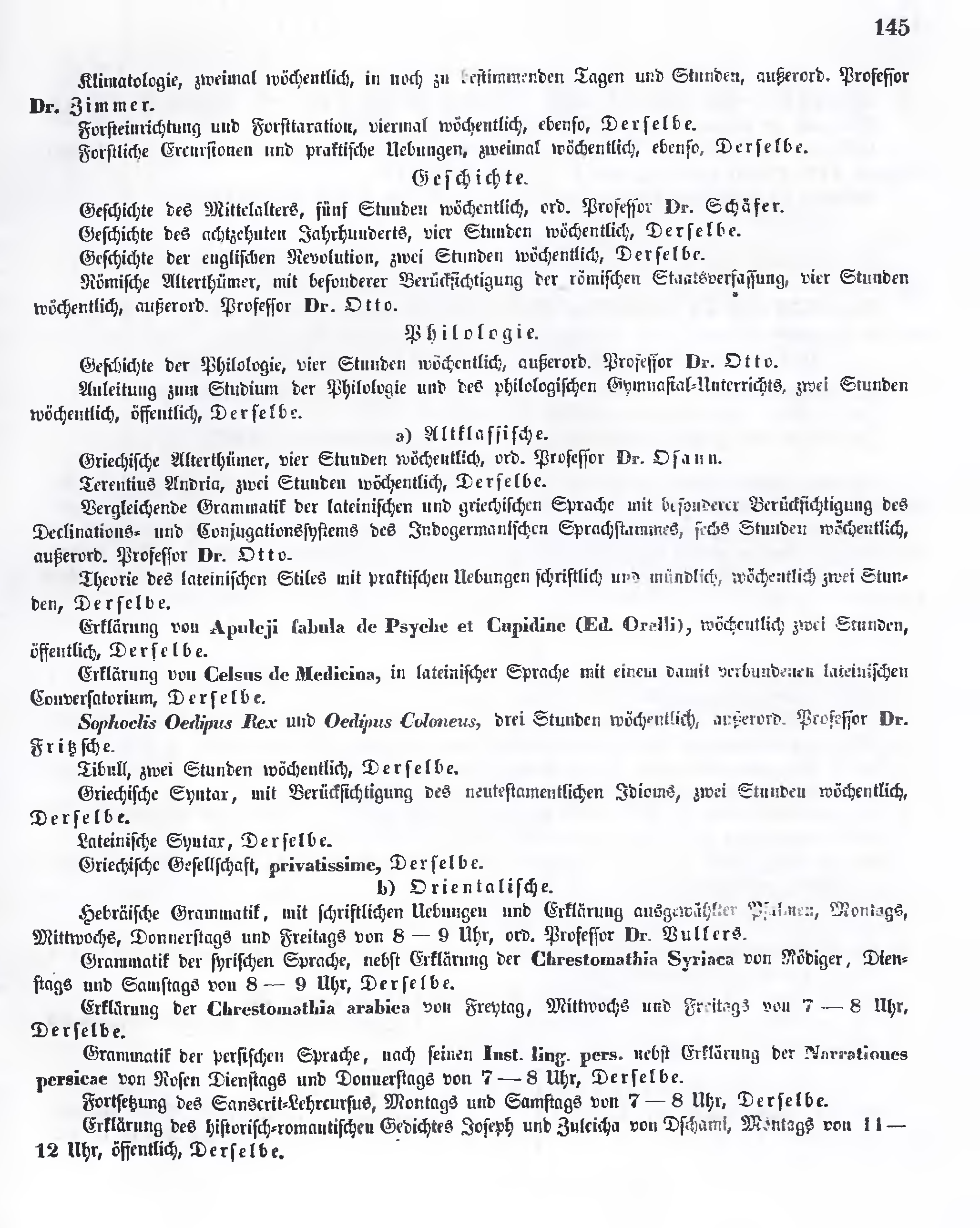 Vergleichende Grammatik der lateinischen und griechischen Sprache mit besonderer Berücksichtigung des Declinations- und Conjugationssystems des Indogermanischen Sprachstammes, sechs Stunden wöchentlich, außerord. Professor Dr. Otto.