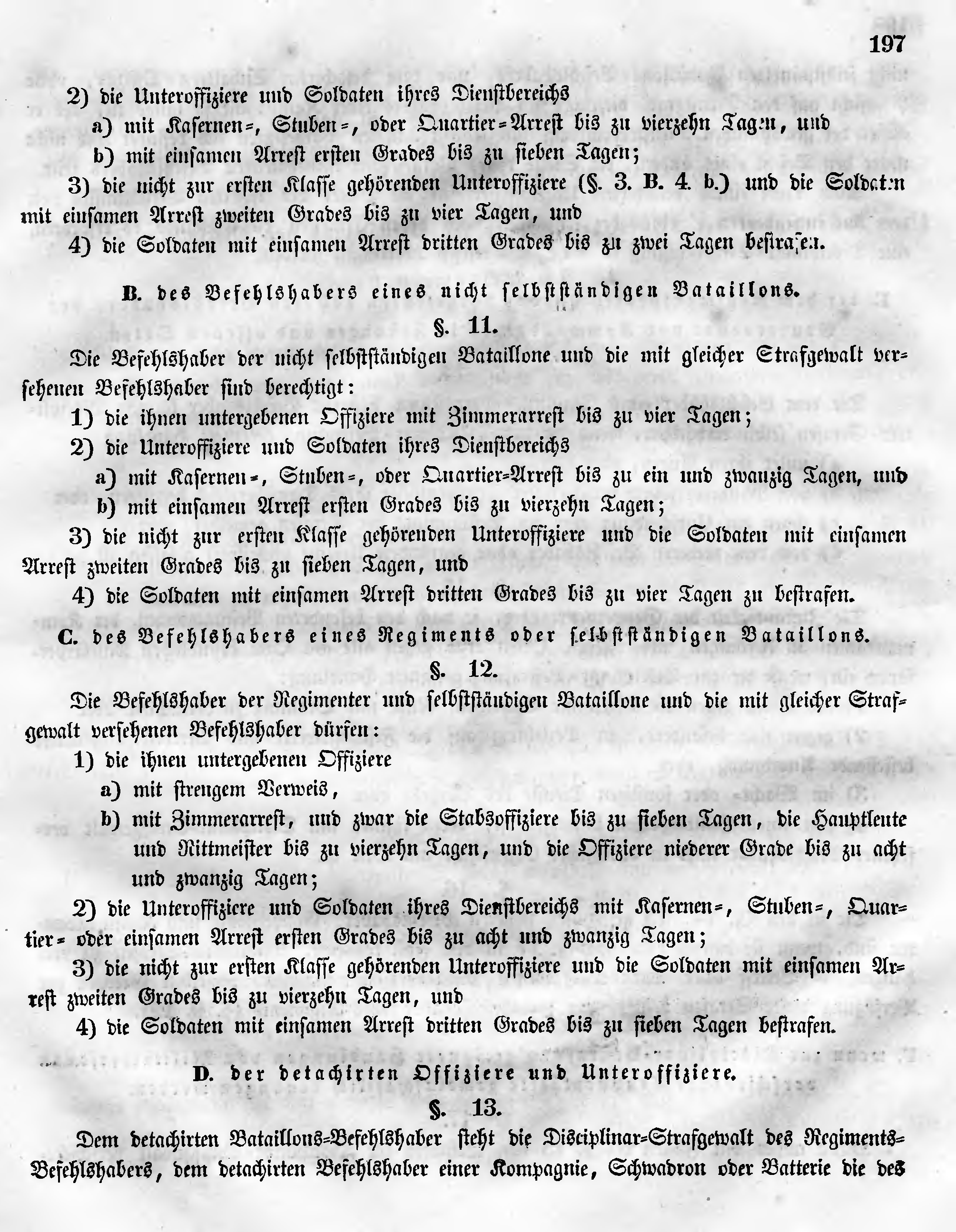 Dem detachirten Bataillons-Befehlshaber steht die Disciplinar-Strafgewalt des Regiments-Befehlshabers, dem detachirten Befehlshaber einer Kompagnie, Schwadron oder Batterie die des