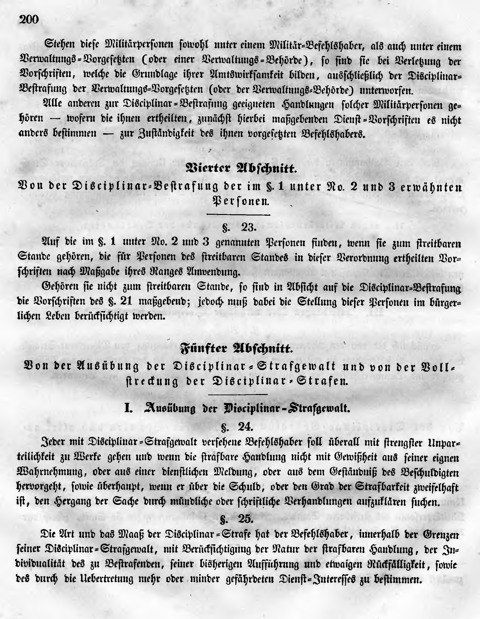 Von der Ausübung der Disciplinar-Strafgewalt und von der Vollstreckung der Disciplinar-Strafen.