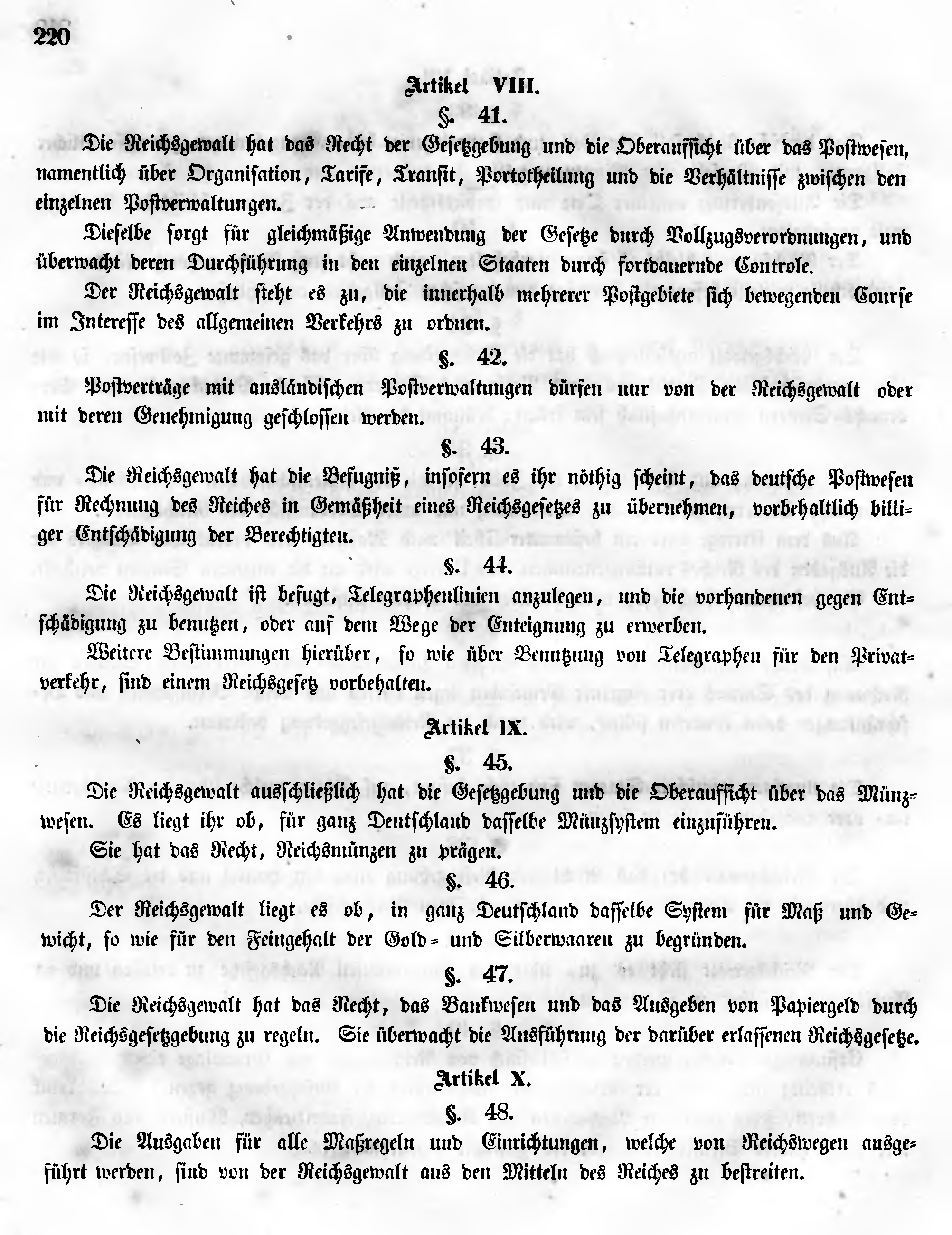 Der Reichsgewalt liegt es ob, in ganz Deutschland dasselbe System für Maß und Gewicht, so wie für den Feingehalt der Gold- und Silberwaaren zu begründen.