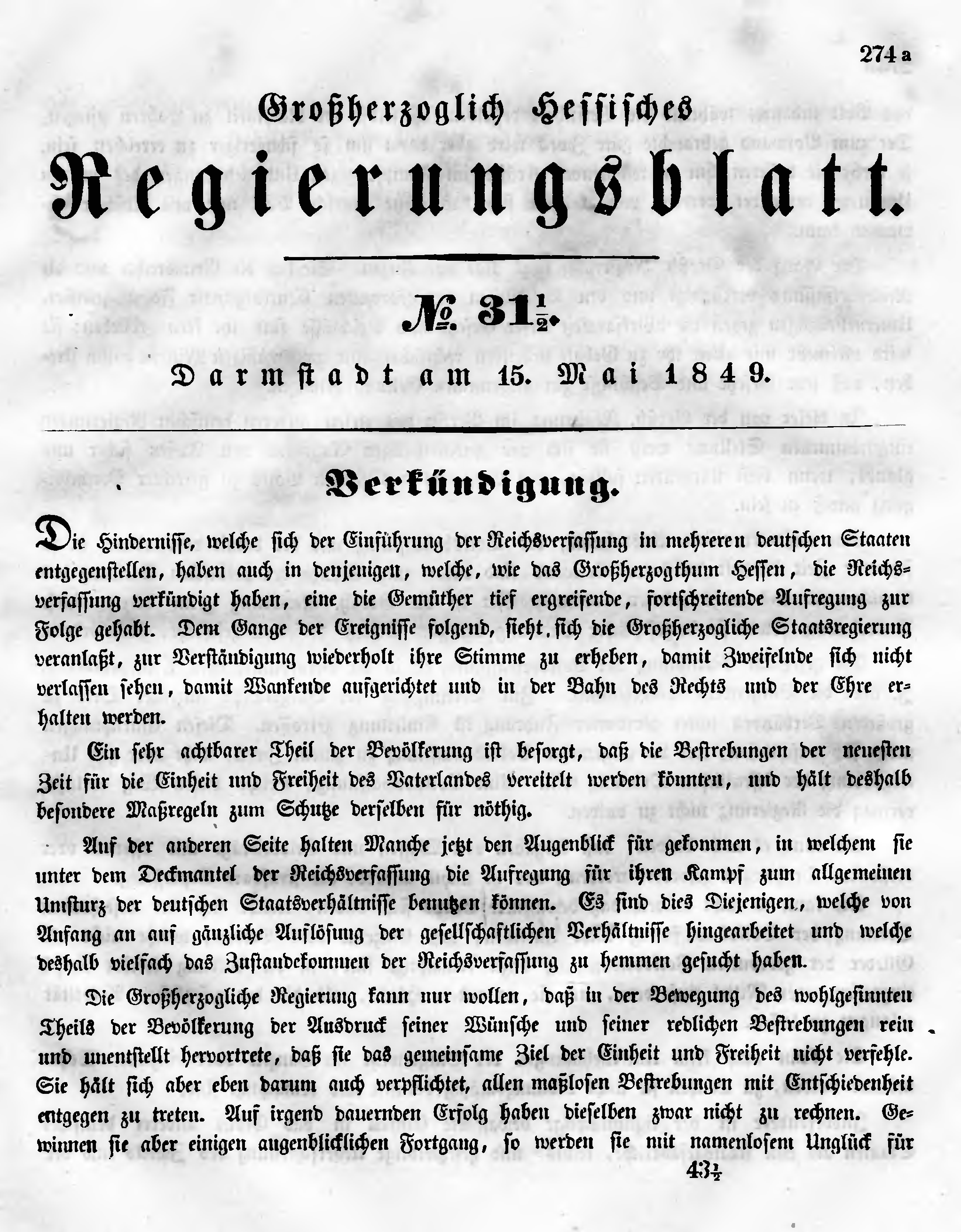 Großherzogtum Hessen/Regierungsblatt 1849/274a