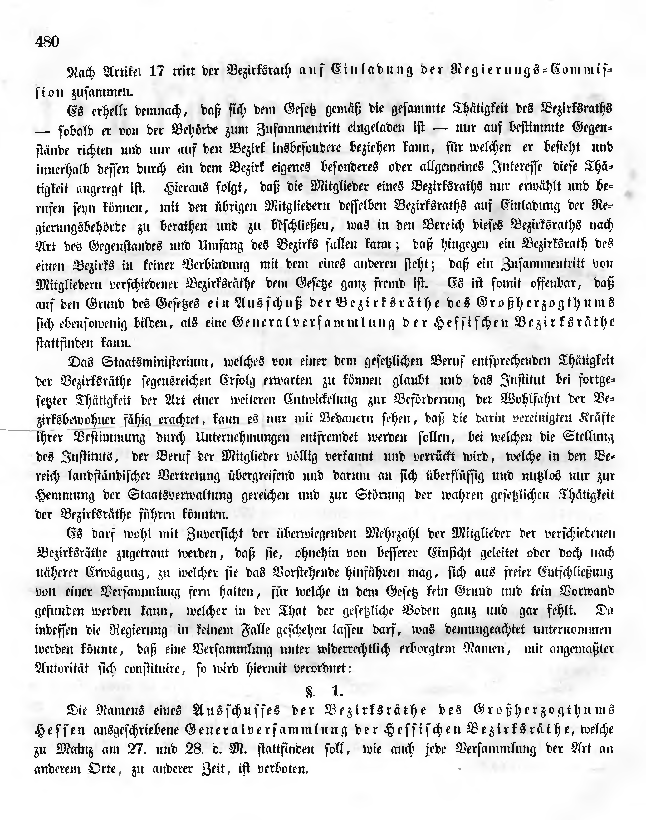 Nach Artikel 17 tritt der Bezirksrath auf Einladung der Regierungs-Commission zusammen.