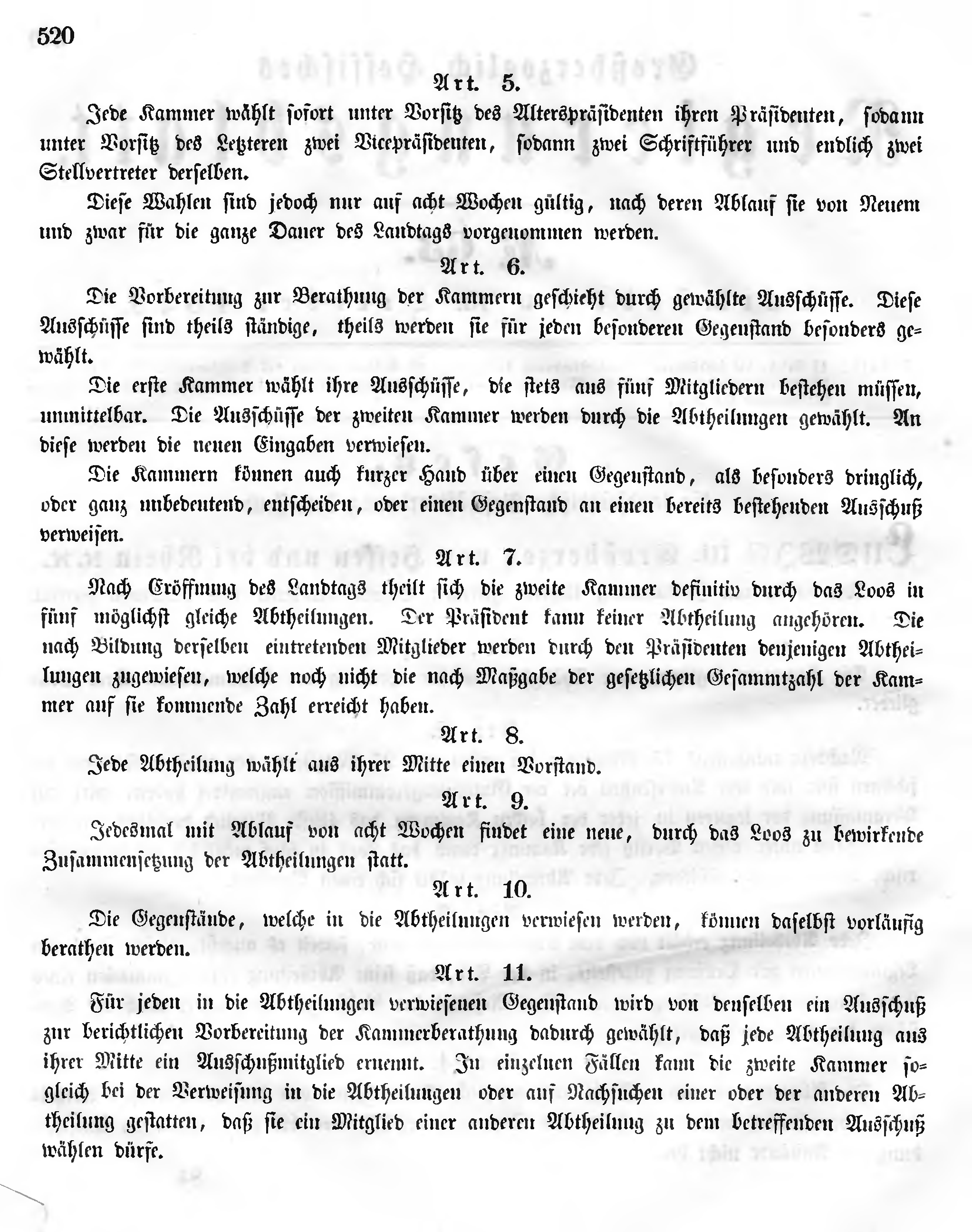 Die Vorbereitung zur Berathung der Kammern geschieht durch gewählte Ausschüsse. Diese Ausschüsse sind theils ständige, theils werden sie für jeden besonderen Gegenstand besonders gewählt.