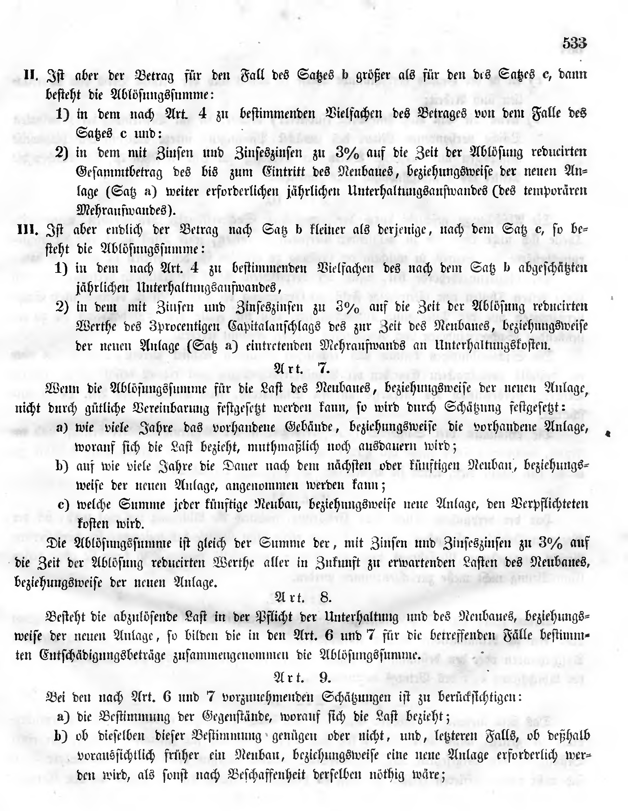 - III. Ist aber endlich der Betrag nach Satz b kleiner als derjenige, nach dem Satz c, so besteht die Ablösungssumme: