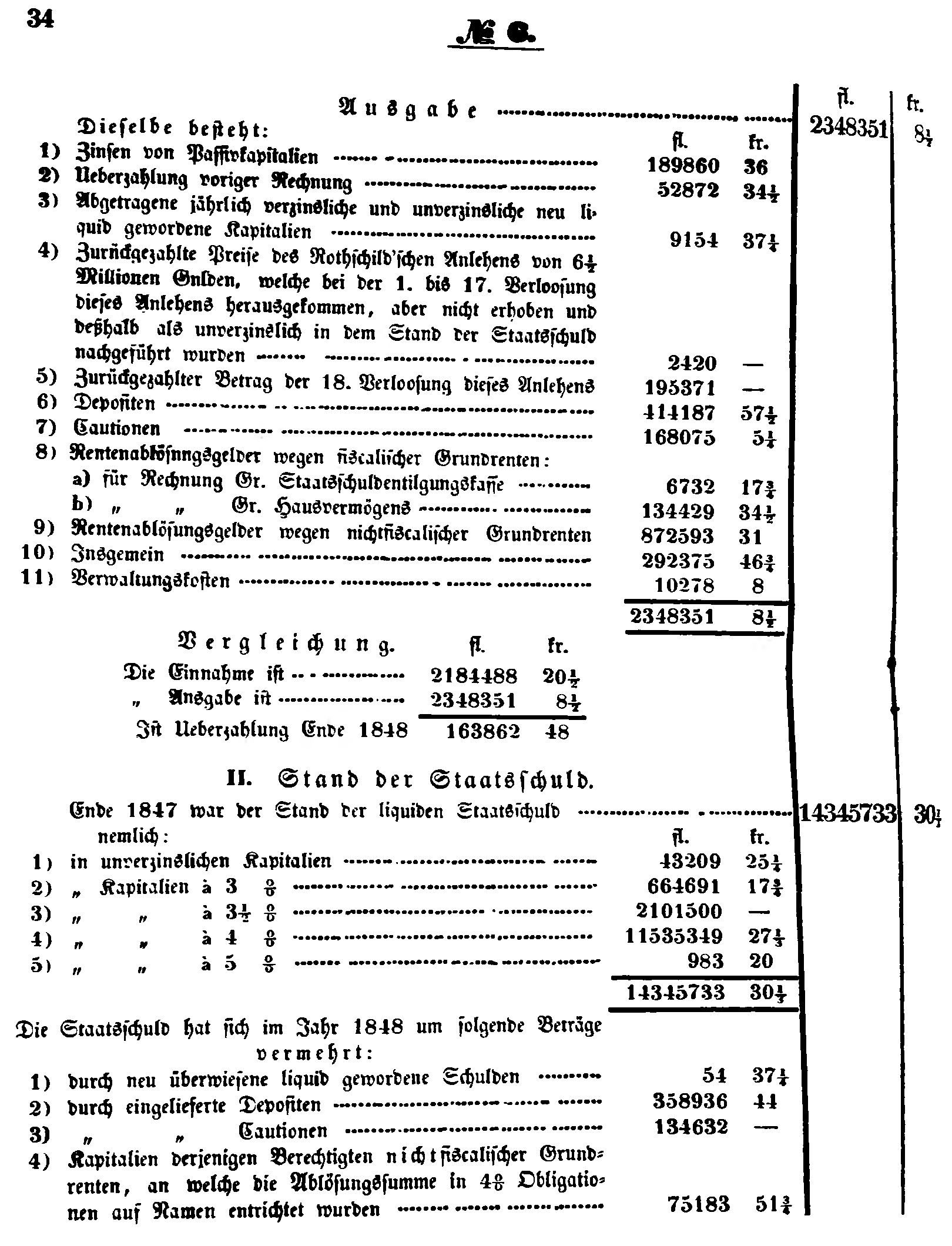 | Ende 1847 war der Stand der liquiden Staatsschuld | 14345733 | 30 1/3 | |||