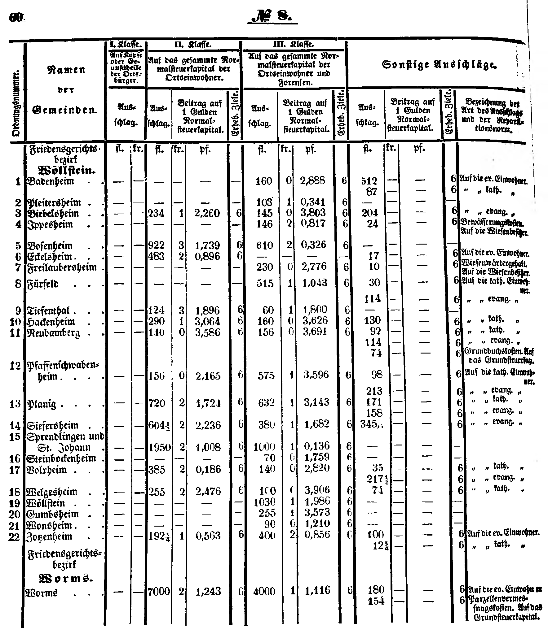 | Worms | - | - | 7000 | 2 | 1,243 | 6 | 4000 | 1 | 1,116 | 6 | 180 | - | - | 6 | Auf die ev. Einwohner. | |