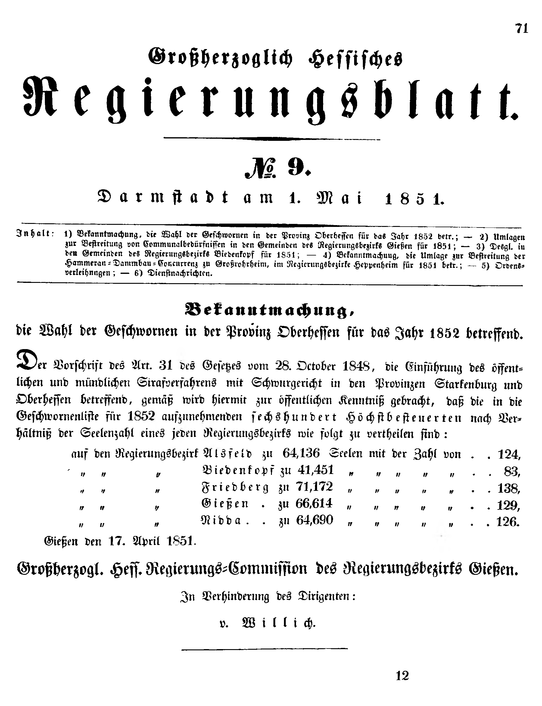 | Großherzogtum Hessen/Regierungsblatt 1851 | |