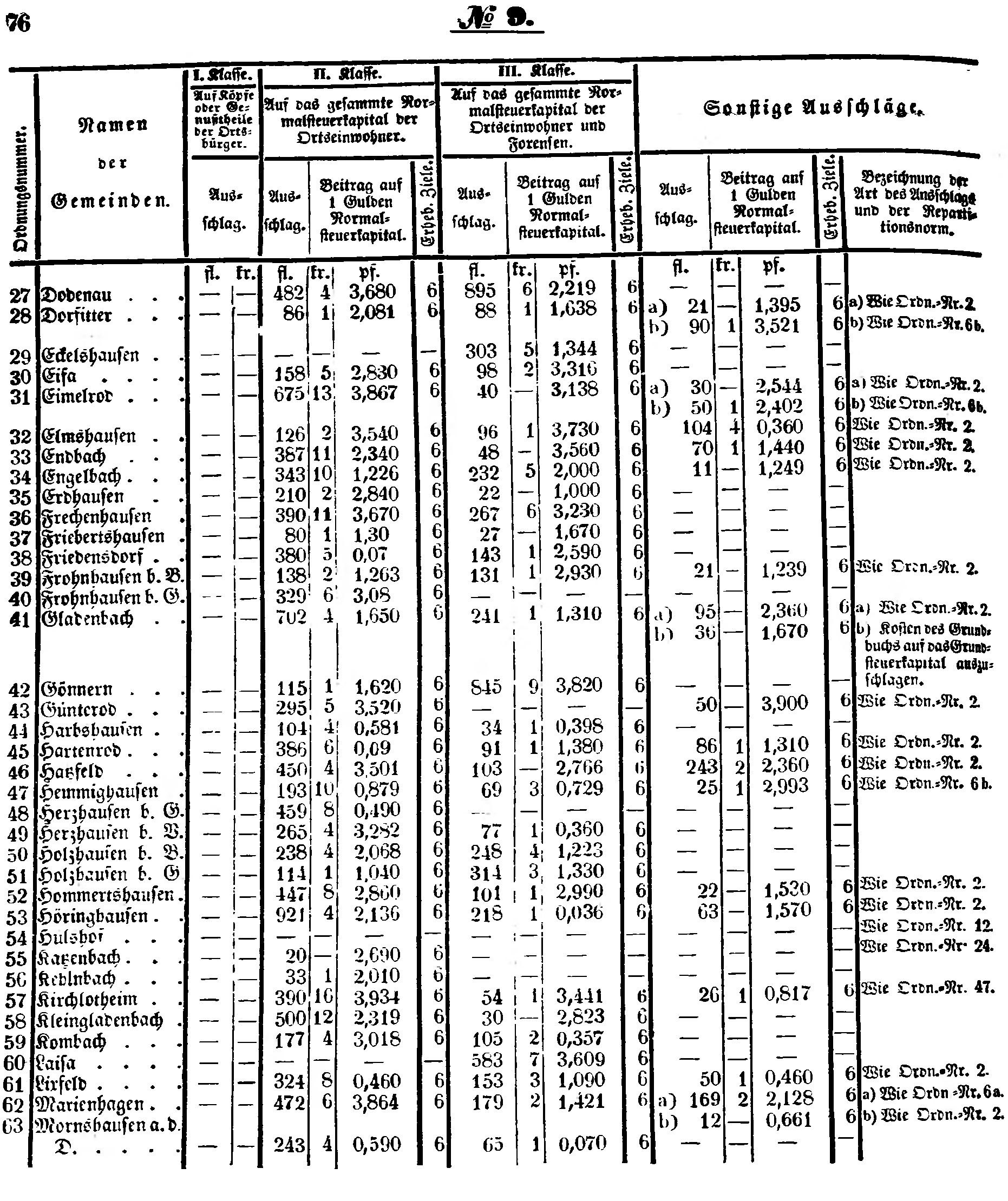 | Auf Köpfe oder Genußtheile der Ortsbürger | Auf das gesammte Normalsteuerkapital der Ortseinwohner | Auf das gesammte Normalsteuerkapital der Ortseinwohner | ||||||||||||||
