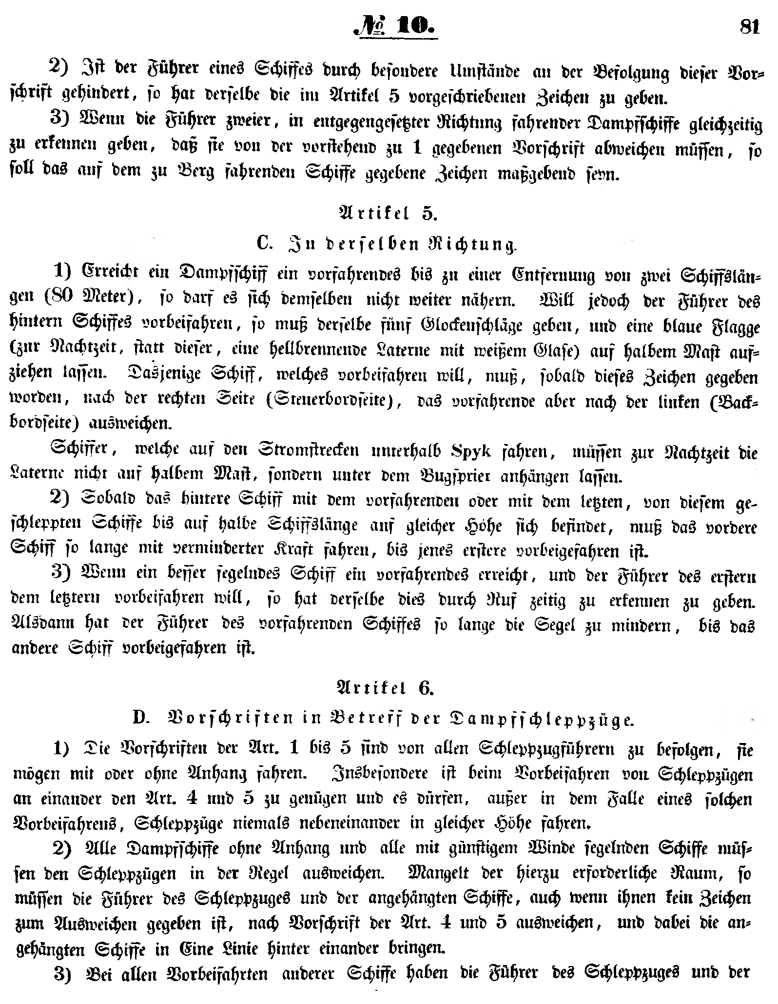 - Schiffer, welche auf den Stromstrecken unterhalb Spyk fahren, müssen zur Nachtzeit die Laterne nicht auf halbem Mast, sondern unter dem Bugspriet anhängen lassen.