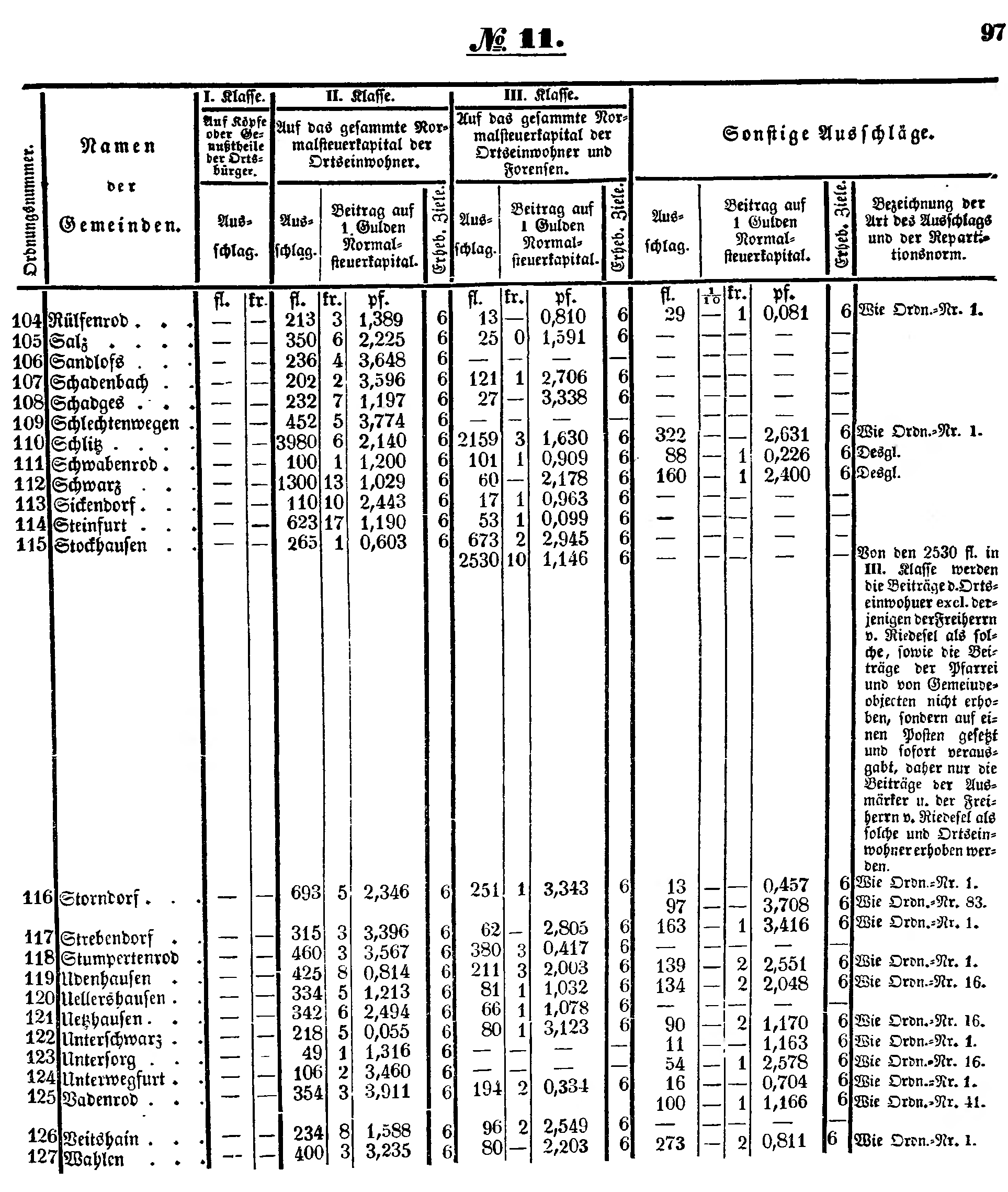 | 2530 | 10 | 1,146 | 6 | - | - | - | - | - | Von den 2530 fl. in III. Klasse werden die Beiträge der Ortseinwohner excl. derjenigen der Freiherrn v. Riedesel als solche, sowie die Beiträge der Pfarrei und von Gemeindeobjecten nicht erhoben, sondern auf einen Posten gesetzt und sofort verausgabt, daher nur die Beiträge der Ausmärker u. der Freiherrn v. Riedesel als solche und Ortseinwohner erhoben werden. | ||||||||