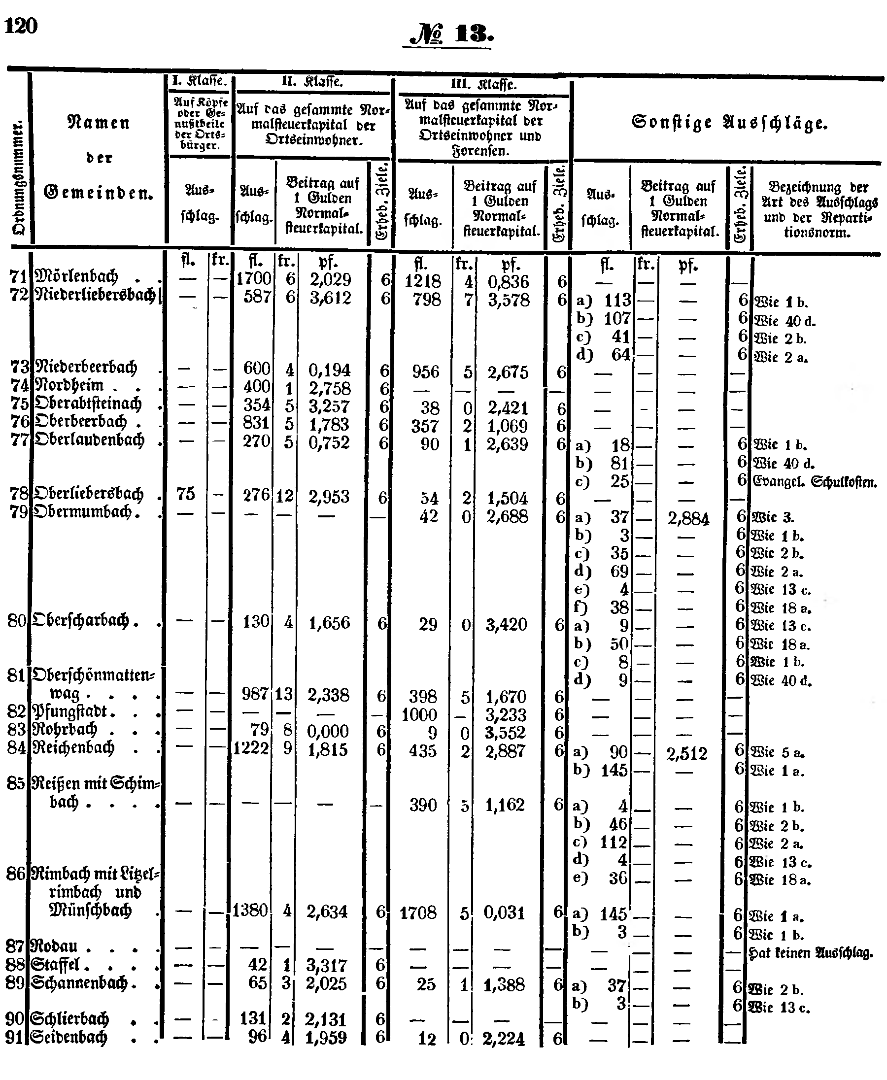 Namen der Gemeinden | I. Klasse. | II. Klasse. | III. Klasse. | Sonstige Ausschläge. | |||||||||||