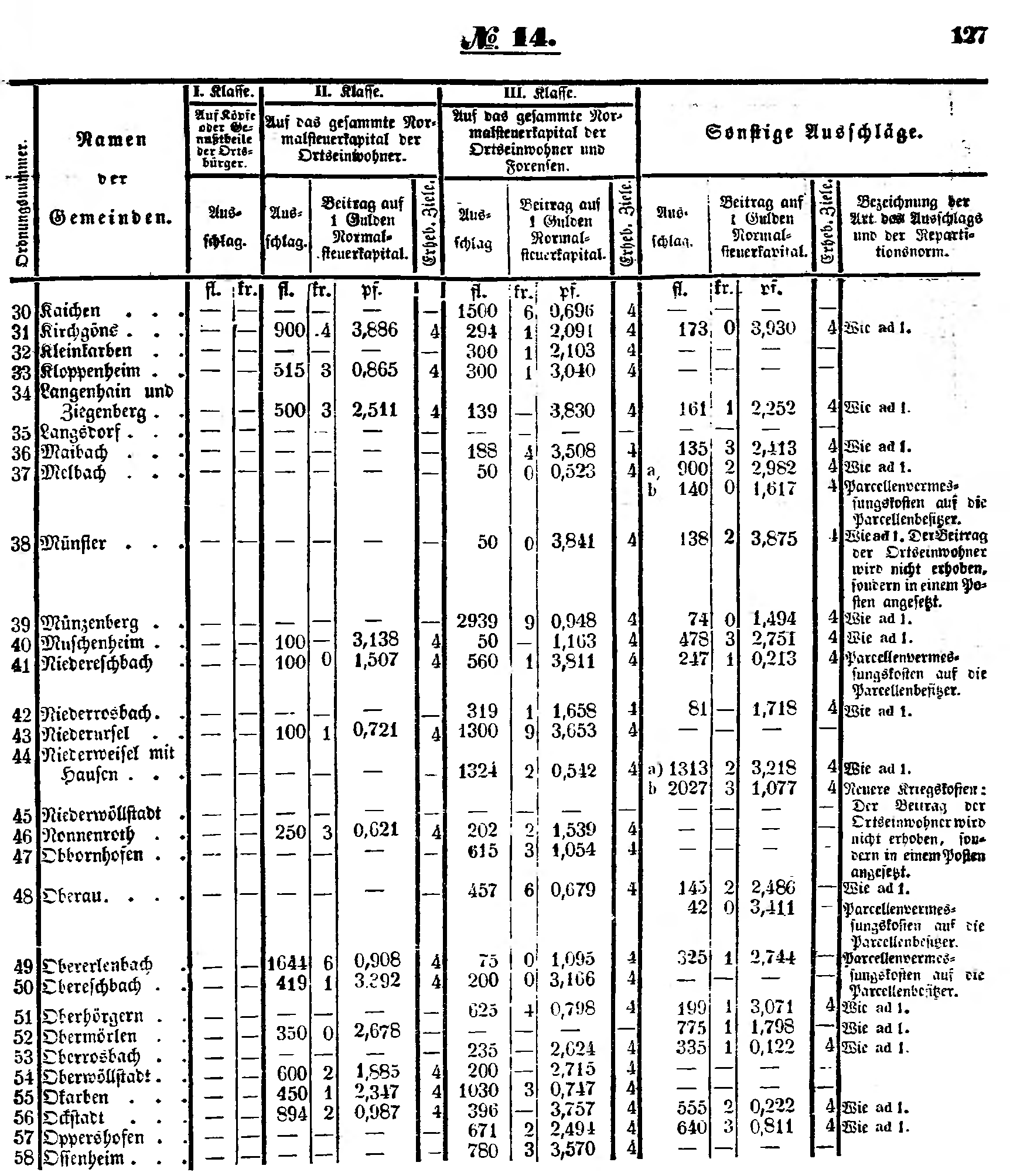 Namen der Gemeinden | I. Klasse. | II. Klasse. | III. Klasse. | Sonstige Ausschläge. | |||||||||||