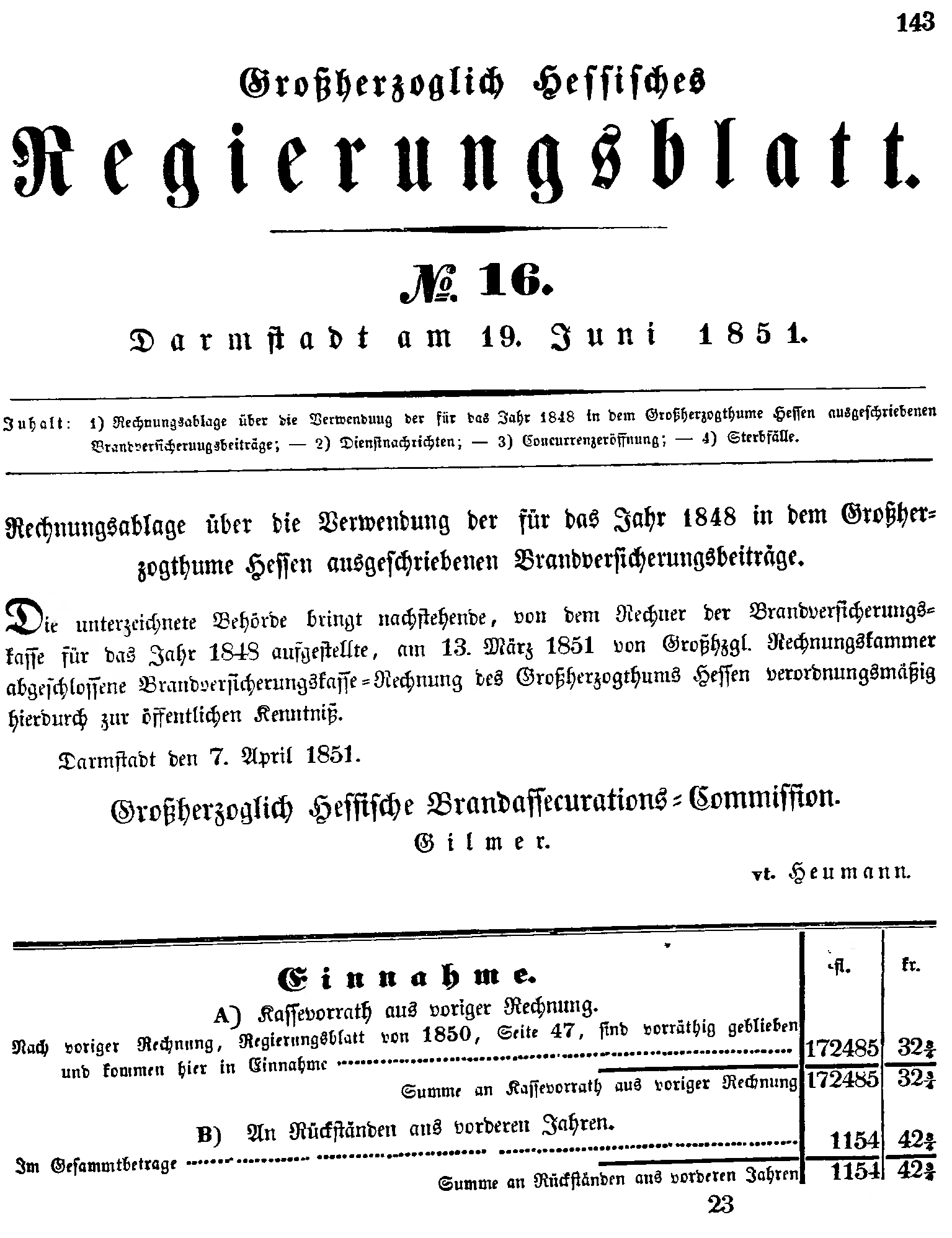 Großherzogtum Hessen/Regierungsblatt 1851/143
