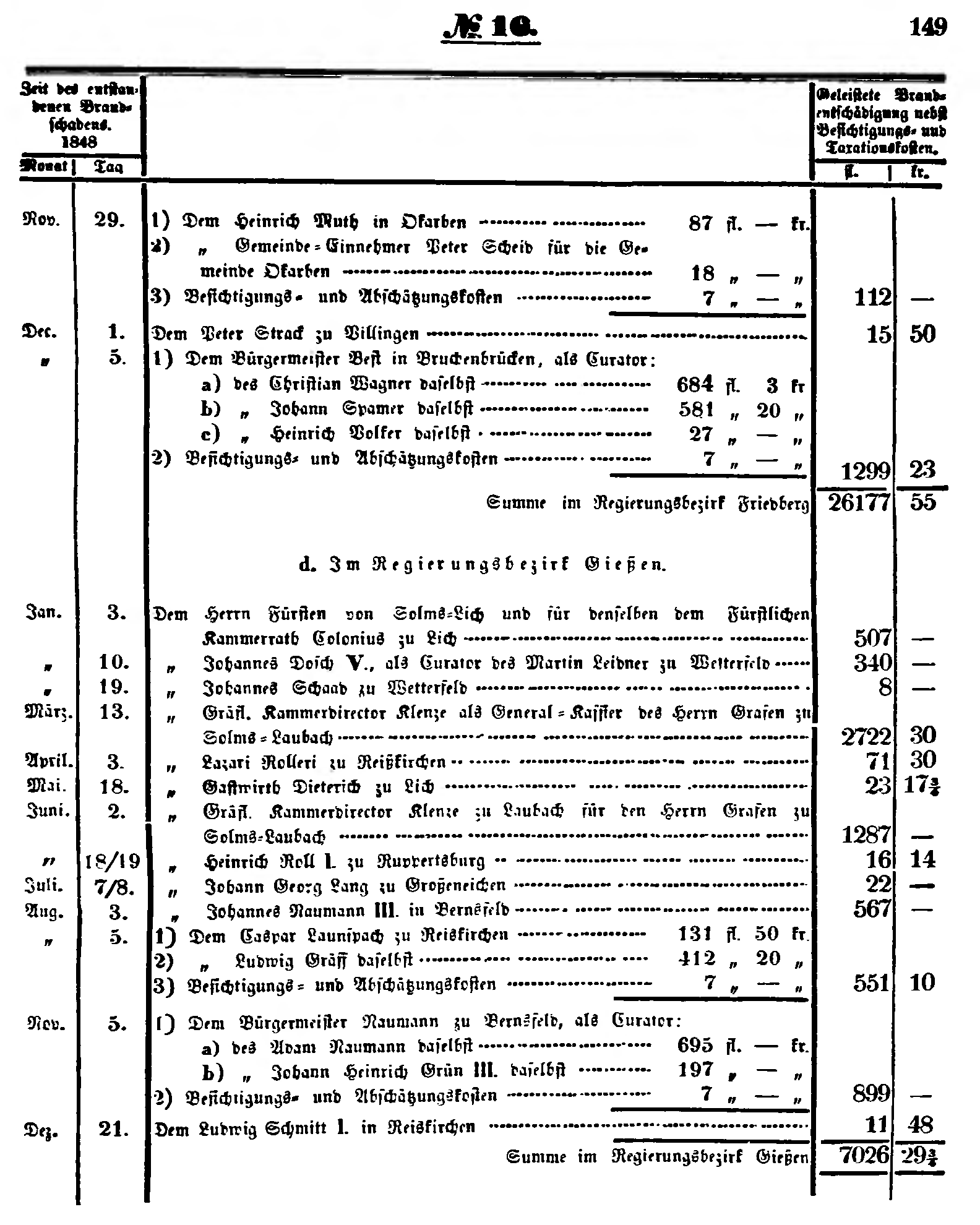 | Nov. | 29. | 1) Dem Heinrich Muth in Okarben | 87