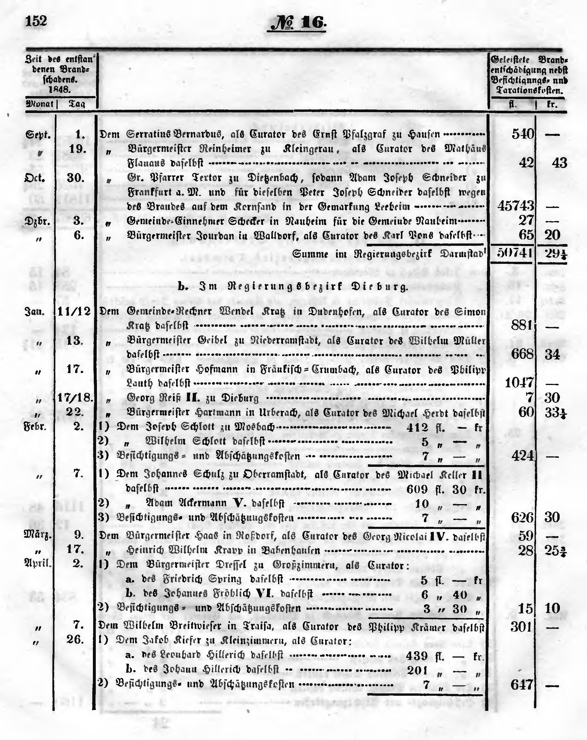 | " | 17. | Dem Bürgermeister Hofmann in Fränkisch-Crumbach, als Curator des Philipp Lauth daselbst | 1047 | - | ||||