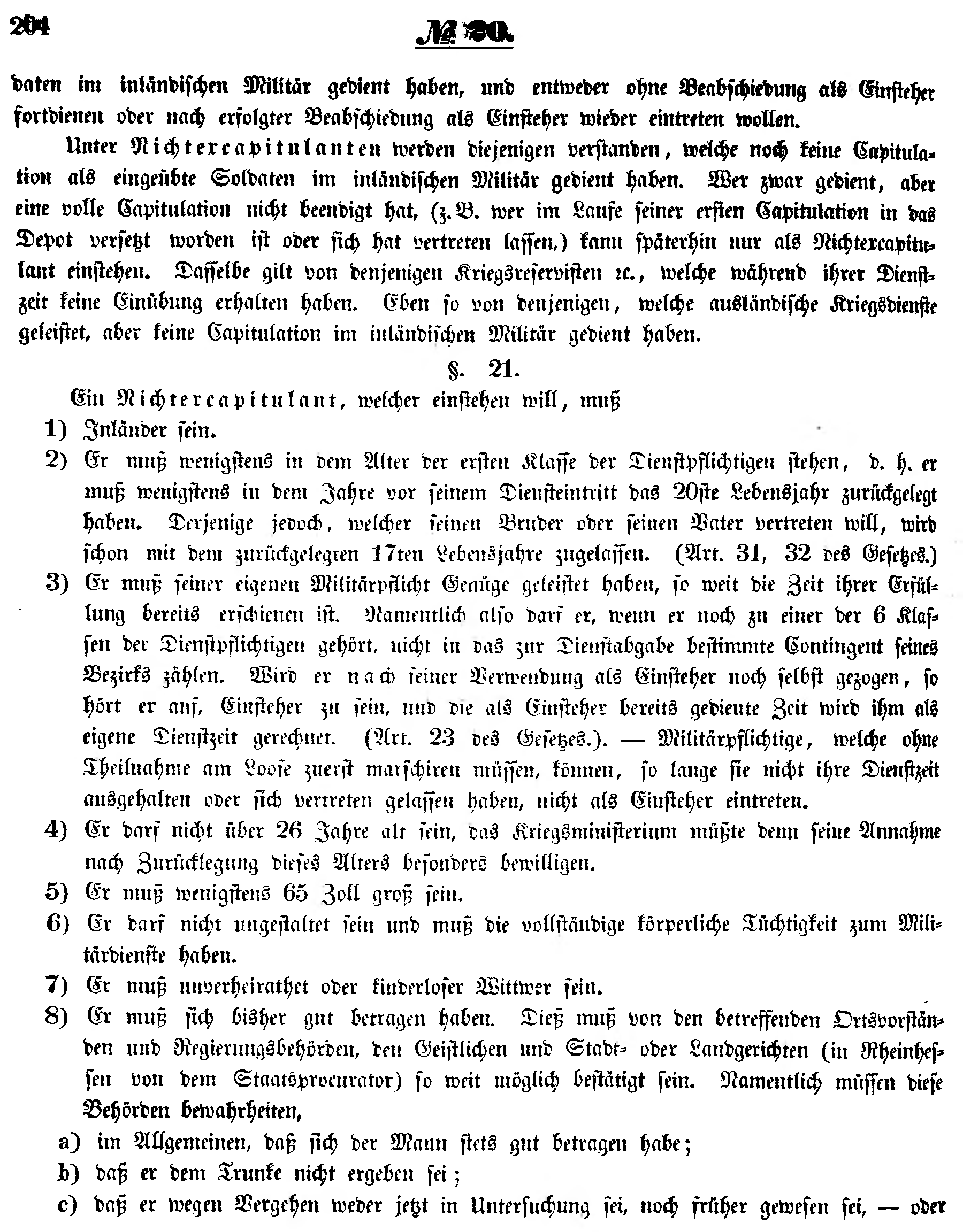Unter Nichtexcapitulanten werden diejenigen verstanden, welche noch keine Capitulation als eingeübte Soldaten im inländischen Militär gedient haben. Wer zwar gedient, aber eine volle Capitulation nicht beendigt hat, (z. B. wer im Laufe seiner ersten Capitulation in das Depot versetzt worden ist oder sich hat vertreten lassen,) kann späterhin nur als Nichtexcapitulant einstehen. Dasselbe gilt von denjenigen Kriegsreservisten etc., welche während ihrer Dienstzeit keine Einübung erhalten haben. Eben so von denjenigen, welche ausländische Kriegsdienste geleistet, aber keine Capitulation im inländischen Militär gedient haben.