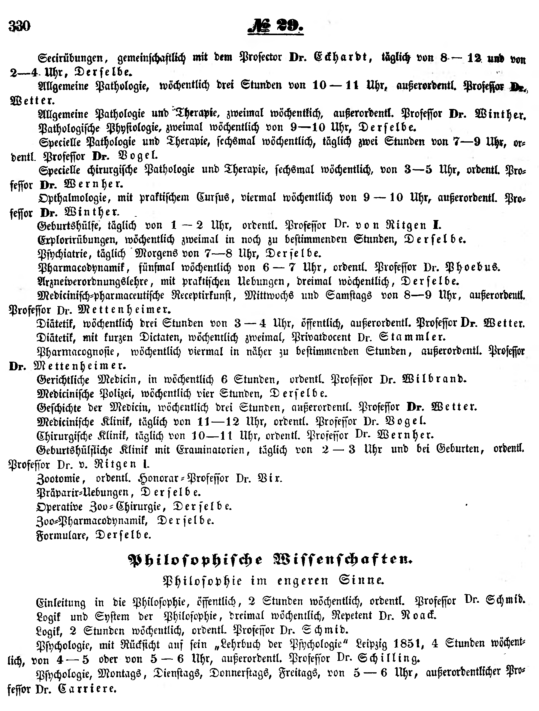 Specielle Pathologie und Therapie, sechsmal wöchentlich, täglich zwei Stunden von 7-9 Uhr, ordentl. Professor Dr. Vogel.